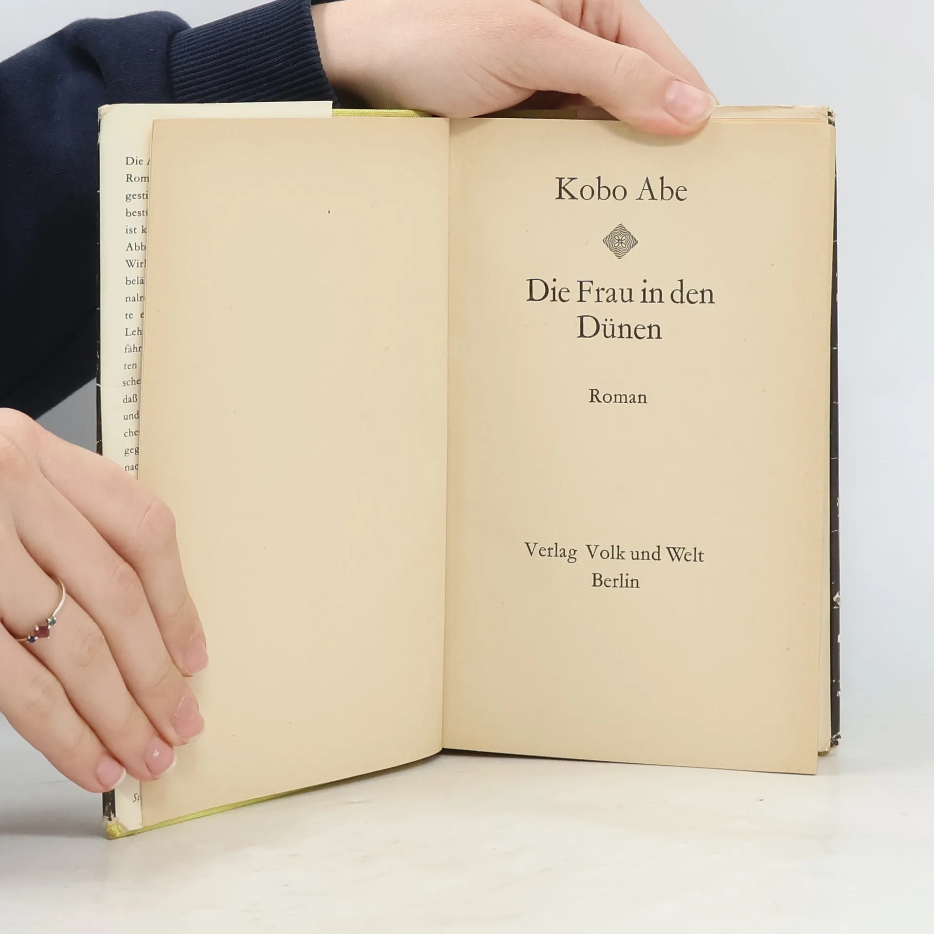In den Sanddünen vor einem abgelegenen Dorf frönt Niki Jumpei seiner einzigen Leidenschaft: der Suche nach unentdeckten Insektenarten. Als die Nacht hereinbricht, bieten ihm die Dorfbewohner ein Nachtquartier an – sie seilen ihn in die Tiefen eines Sandlochs hinab, zu einer einzelnen Hütte. Dort empfängt ihn eine junge Frau in geheimnisvoller Erwartung. Die ganze Nacht über bleibt sie auf und schaufelt das Haus frei. Als der Mann am nächsten Tag aufbrechen will, ist die Strickleiter verschwunden. Und durch alle Ritzen der Hütte dringt unablässig der Sand. Dieser Roman begründete Kobo Abes Ruhm und wurde in über zwanzig Sprachen übersetzt.