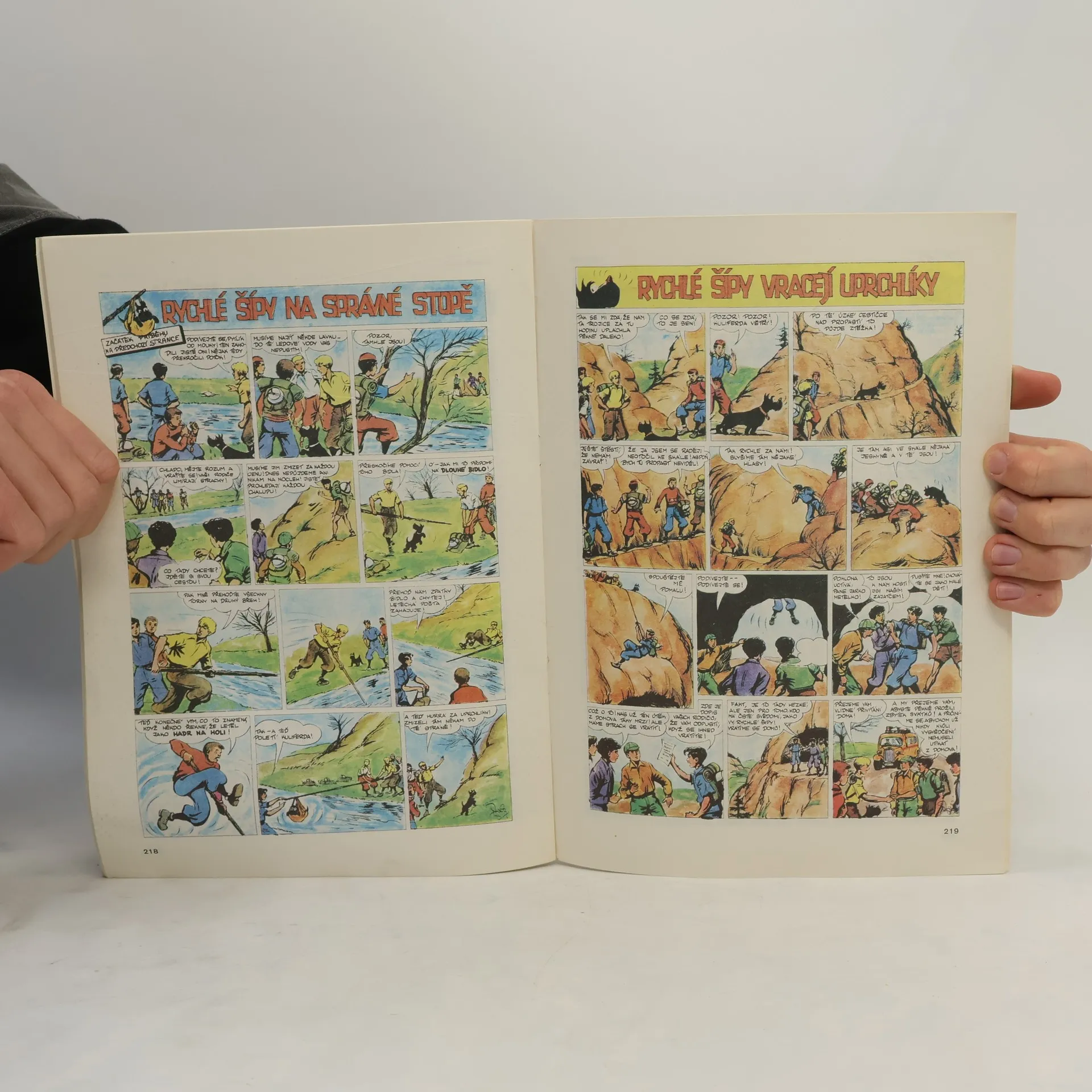 Rychlonožka nastupuje do učení Rychlonožka na podivné stopě Rychlé šípy patrájí po kole Rychlonožka je prozrazen Rychlé šípy sledují Tyčku a spol. Rychlé šípy a létající kolo Rychlé šípy a Podfukář Rychlé šípy chrání Podfukáře Rychlé šípy závodí ve zručnosti Rychlé šípy před známkařskou záhadou Rychlé šípy odhalují podvod Rychlé šípy skládají zprávu na nosech Rychlé šípy sestupují do dolních ulic Rychlé šípy hledají hocha se žlutým kolem Rychlé šípy se vzdávají odměny Strýček Tadeáš Rychlým šípům Rychlé šípy a vykradač chat Rychlé šípy proti ozbrojenému lupiči Rychlé šípy začínají hru o Totem Rychlé šípy objevují Totem Rychlé šípy vítězí ve hře o Totem Rychlé šípy v Údolí záhad Rychlé šípy: Cesta do záhadného domu Rychlé šípy: Jindra s Červenáčkem uvězněn Rychlé šípy jdou za uprchlíky Rychlé šípy na správné stopě Rychlé šípy vracejí uprchlíky Rychlé šípy mají svátek Rychlé šípy staví obojživelný vůz Bratrstvo Kočičí pracky trochu navlhlo Bratrstvo Kočičí pracky plánuje pomstu Rychlé šípy nikdo nedoběhne Rychlé šípy a střelná zbraň Rychlé šípy pomáhají starým lidem Rychlé šípy si vydělávají peníze Rychlé šípy nesou plechovku desetníků Rychlonožkův indiánský sen Rychlonožka u kůlu smrti Rychlé šípy na sjezdu klubů Rychlé šípy hledají Kondory Rychlé šípy v zajetí Kondorů Rychlé šípy a tajemství Kondorů Rychlé šípy žijí Modrým životem Rychlé šípy v podezření Rychlé šípy mají dobrou pověst,ale... Rychlé šípy prokazují svoji nevinu Rychlé šípy těší nemocného chlapce Rychlé šípy sledují oběh koruny