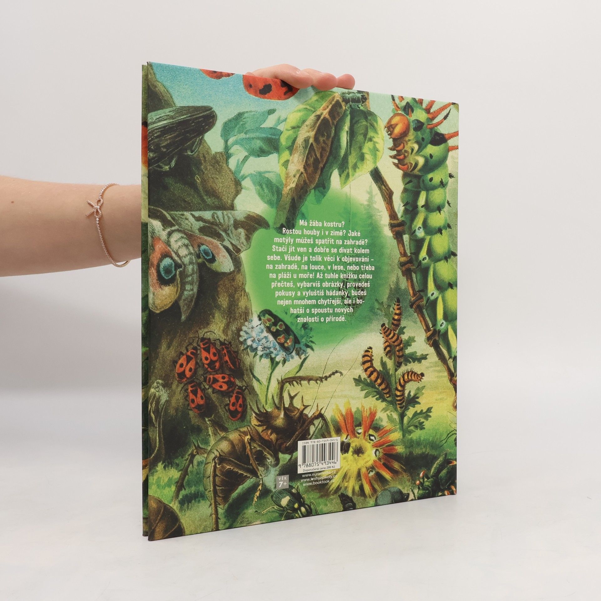 Nechejte děti dívat se na přírodu jinýma očima! Každý z nás si pamatuje, s jakým okouzlením sbíral mušle na pláži, žasl nad barvami podzimního listí, obdivoval let motýla a radoval se z objevu záhadné houby. Ale jaký živočich mušli vytvořil a žil v ní? Proč se listí na podzim zbarvuje, jak se zrodil motýl a jaká tajemství ukrývá svět hub? V této ilustrované knize pro mladší školáky, pojaté spíše jako kreativní pracovní sešit, jsou odpovědi podány hravě a nápaditě. Čtenář je získává aktivně – vybarvováním, luštěním hádanek a plněním zábavných úkolů. Kniha se vymyká běžným encyklopediím o přírodě – je originální obsahem, pojetím i výtvarnou podobou.