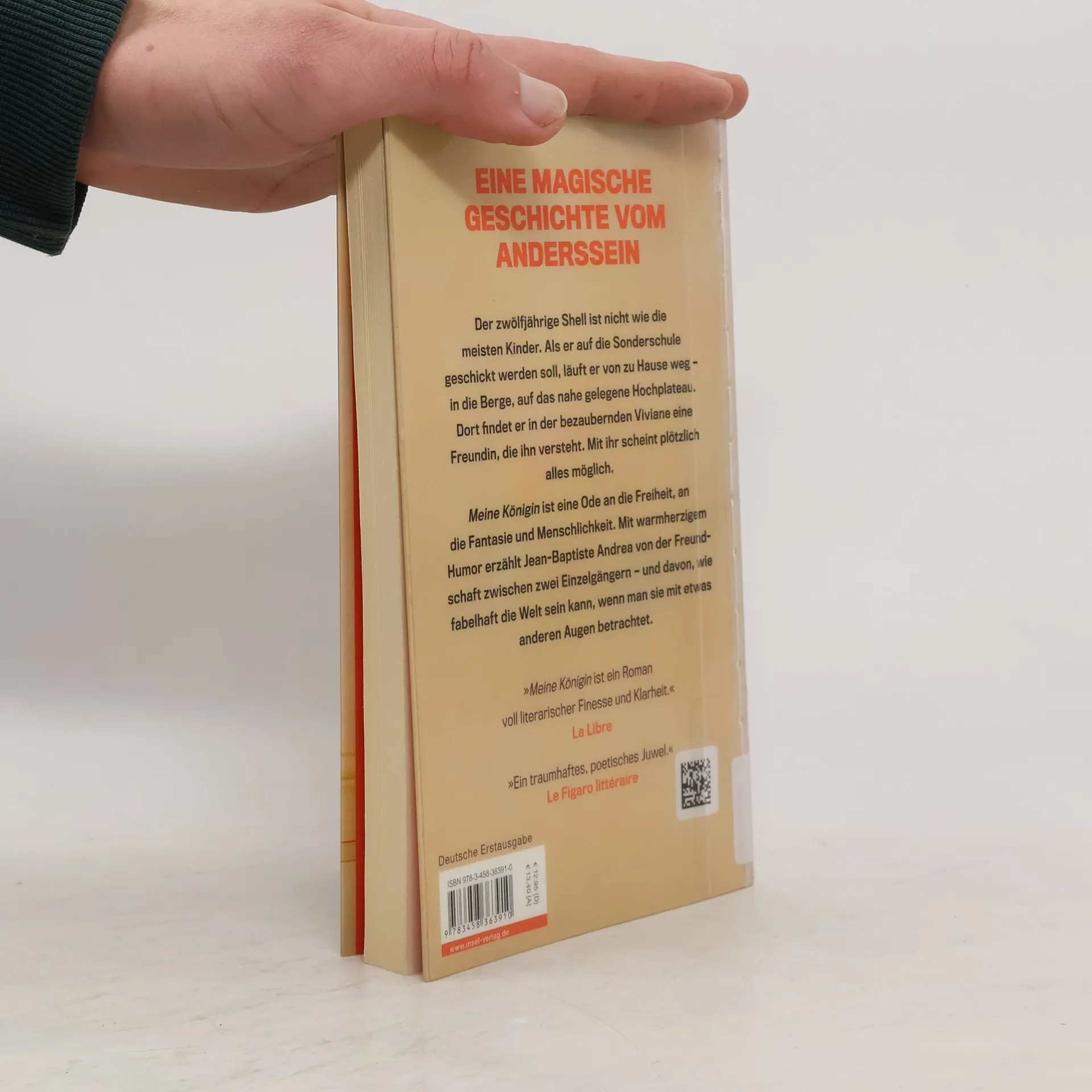 Sommer in der Provence: Der zwölfjährige Shell lebt mit seinen Eltern auf deren Tankstelle. In die Schule geht er nicht mehr, stattdessen liebt er es, mit Streichhölzern zu zündeln, schicke Autos vollzutanken und die Zapfsäulen zu polieren. Shell ist anders als andere Kinder. Als seine Eltern ihn auf eine Sonderschule schicken wollen, beschließt er, fortzugehen. In den Krieg, den er im Fernsehen immer sieht. Er will seinen Eltern und überhaupt allen beweisen, dass er kein Kind mehr ist, sondern ein richtiger Mann. Im nahe gelegenen Hochplateau hinter der Tankstelle findet Shell zwar keinen Krieg, aber dafür einen scheuen Schäfer und Viviane – ein Mädchen, das ihn verzaubert. Mit ihr scheint plötzlich alles möglich. Das Plateau wird ihr Spielfeld, ihr eigenes Reich. Doch eines Tages taucht Viviane nicht mehr auf, und Shell begibt sich auf die gefährliche Suche nach seiner neuen Freundin – dem ersten Menschen, der ihn wirklich versteht. Meine Königin ist eine Ode an die Freiheit, an die Phantasie und das Anderssein. Mit warmherzigem Humor erzählt Jean-Baptiste Andrea von der Freundschaft zwischen zwei Einzelgängern – und davon, wie fabelhaft die Welt sein kann, wenn man sie mit etwas anderen Augen betrachtet.