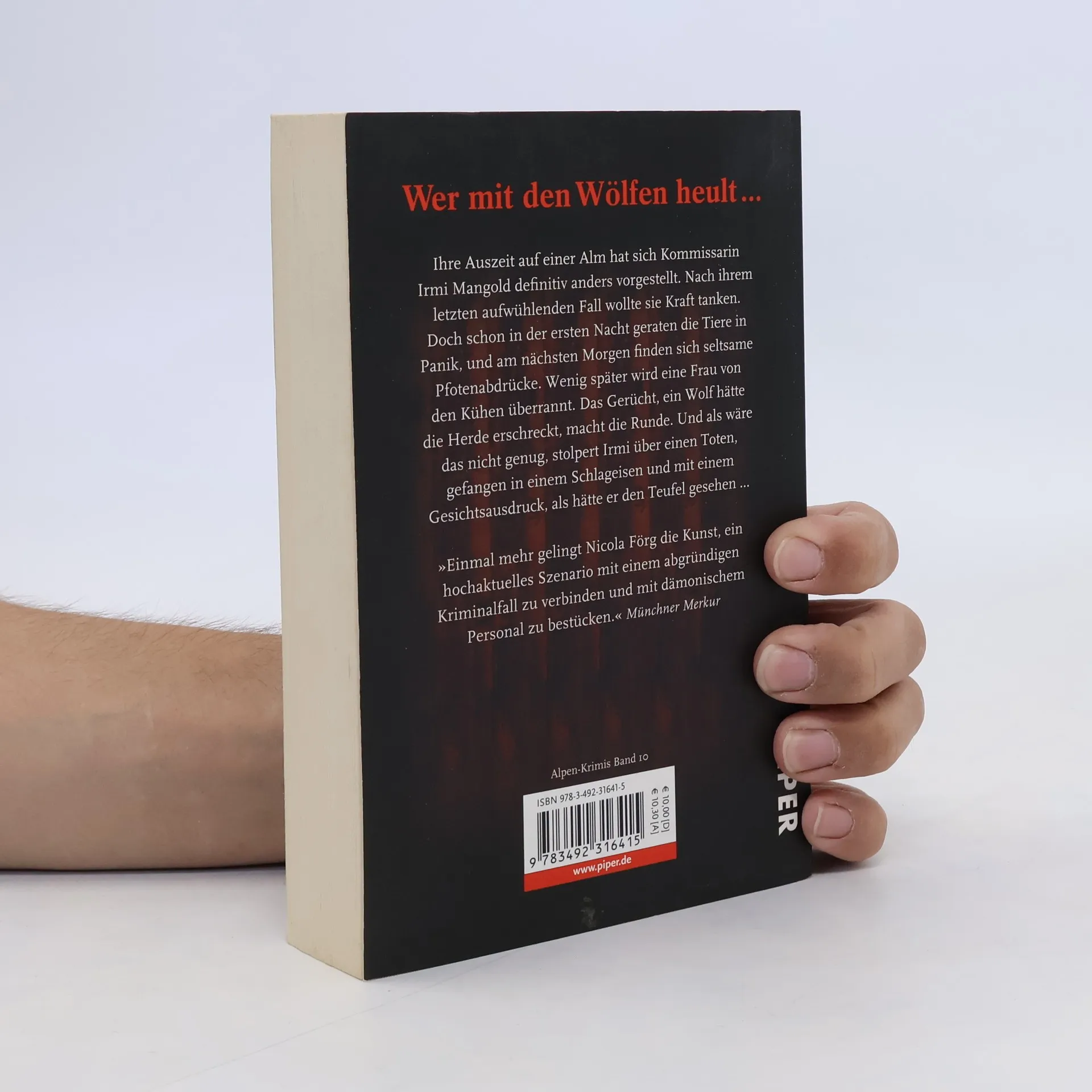 Bestseller-Autorin Nicola Förg verwebt im 10. Band ihrer erfolgreichen Alpenkrimi-Reihe (u. a. »Tod auf der Piste«, »Hüttengaudi«, »Scharfe Hunde« und »Rabenschwarze Beute«) um die Kommissarinnen Irmi Mangold und Kathi Reindl atmosphärische Landschaftsbeschreibungen, eine spannende Krimihandlung, charmante und lebensechte Charaktere und die aktuelle Diskussion um die Rückkehr der Wölfe zu einer packenden Lektüre. Eigentlich sollte Kommissarin Irmi Mangold abgehärtet sein gegen Tod und Verdammnis, aber drei bizarre Fälle – darunter ein toter Mann gefangen in den Schlageisen einer so genannten »Wolfsgrube« – erschüttern sie tief. Ihr Sabbatical als Almhirtin hin oder her: Sie muss nun doch Tatorte erfühlen, unbequeme Fragen stellen, denn schließlich geht es hier um »ihre« Kühe und »ihre« Alm! »Man folgt der Autorin gerne in die Berge und in dunkle Abgründe. Förgs Krimis wollen … spannend unterhalten und dabei über Missstände aufklären. Und das ist Nicola Förg wieder einmal gelungen.« Augsburger Allgemeine »Ein spannender Alpenkrimi mit herrlichen Charakteren und einer Geschichte, die den Leser bewusst immer mal wieder ein bisschen in die Irre führt, um am Ende dann ganz logisch aufzugehen. Ein Krimi nicht nur für Bayern-Urlauber.« Ruhr Nachrichten