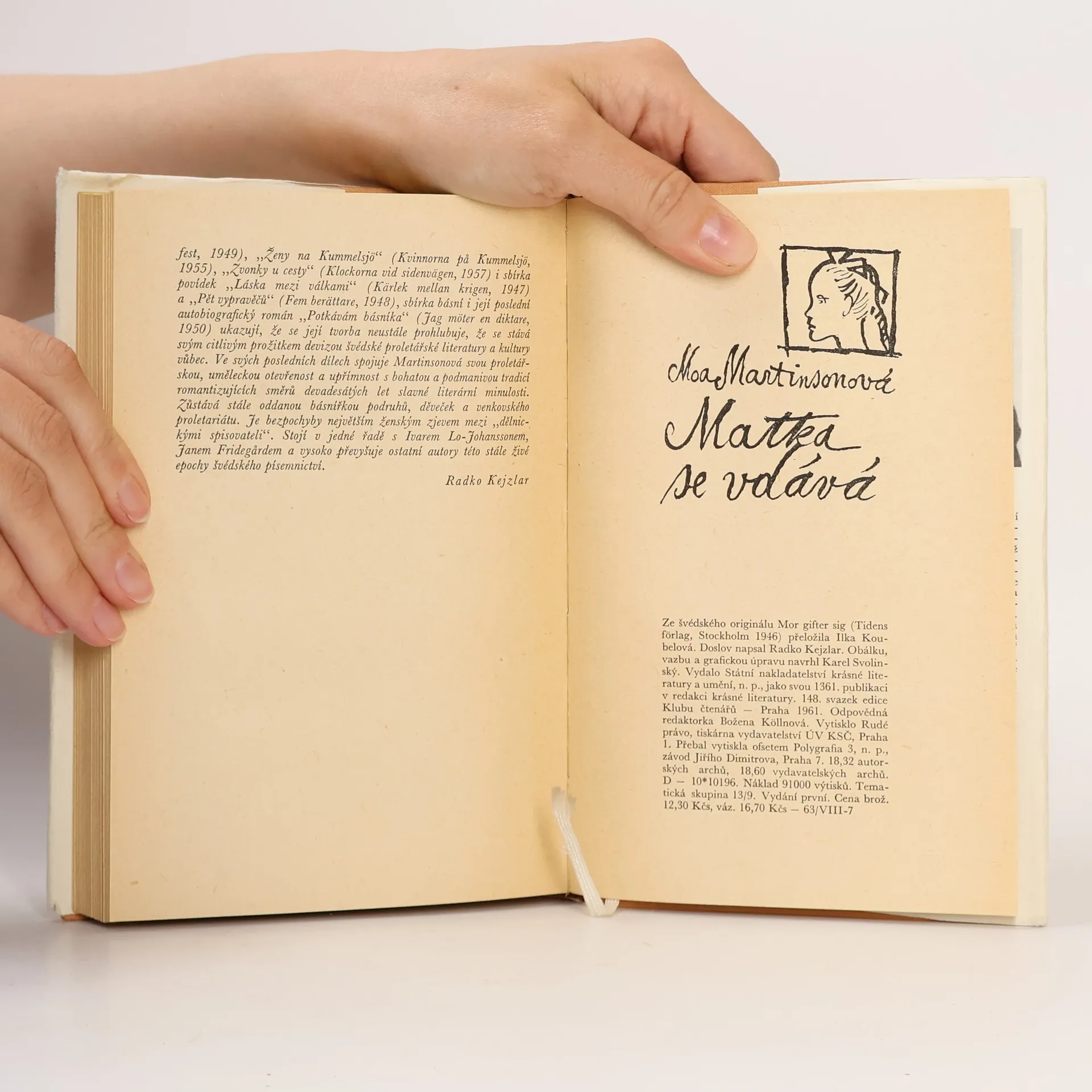 Životem psaný román, vzpomínková kniha význačné švédské spisovatelky (nar. 1890), která s vyhraněným smyslem pro postižení pravdy života a prostředí vypráví o svém smutném dětství, zejména o těžkém životním údělu své matky, tovární dělnice, která si i v nejsvízelnějších životních situacích udržuje víru v život a s láskou, obětavostí i hrdinstvím vždy znovu buduje domov milovanému dítěti.