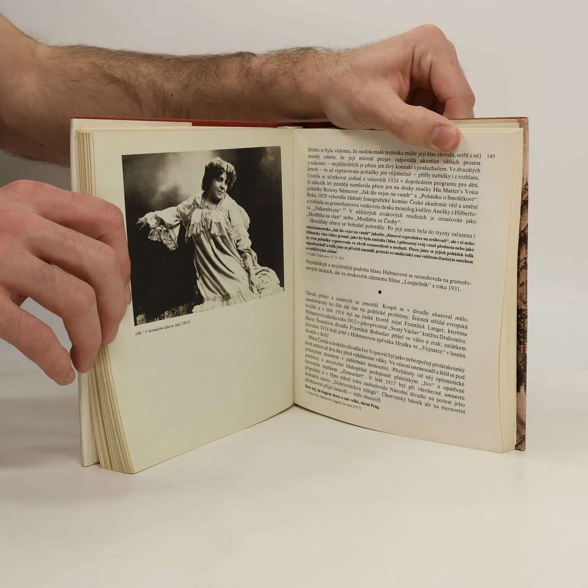 Kniha líčí bohaté, výrazově mnohovrstnaté herectví herečky Marie Hübnerové (1865 - 1931). Osu publikace tvoří výklad autorky, do něhož jsou organicky začleněny dobové dokumenty nejrůznější povahy: paměti a vzpomínky, korespondence, divadelní kritiky a stati, ankety, materiály většinouzapomenuté, někdy i neznámé, ukryté v různých archívech a knihovnách.