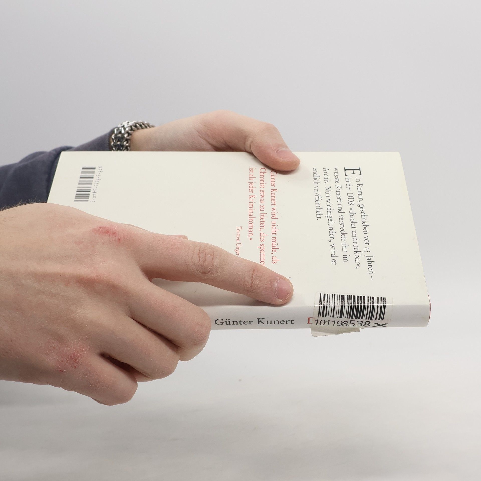 Ein Roman, geschrieben vor 45 Jahren - in der DDR »absolut undruckbar«, wusste Kunert und versteckte ihn im Archiv. Nun wiedergefunden, wird er endlich veröffentlicht. In einer Truhe fand Günter Kunert unlängst ein Manuskript, das er vor fast fünfundvierzig Jahren geschrieben hat - einen Roman, so frech, brisant und »politisch unmöglich«, dass Kunert, der damals noch in der DDR lebte, ihn gar nicht erst einem Verlag vorlegte. »Absolut undruckbar«, wusste er und vergrub das Manuskript so tief in seinem Archiv, dass er selbst es vollkommen vergaß und erst jetzt durch Zufall wiederfand. Kunert ist berühmt für seine skeptischen Gedichte, die vor ökologischen Katastrophen und Fehlentwicklungen warnen, für seine Miniaturen und kurzen Prosatexte, Notate, Hörspiele, Filme; als Romanautor kennt man ihn eher nicht. Und hier ist nun ein Roman, funkelnd und frisch, geschrieben zur Hälfte des Lebens: Der männliche Protagonist sucht nach einem Geschenk zum vierzigsten Geburtstag seiner Frau; die Auswahl in den Geschäften ist ebenso entmutigend wie seine Einfallslosigkeit, schließlich tauscht er Mark der DDR in Westgeld, um im Intershop einzukaufen, und macht dort unbedachte Bemerkungen. So nimmt eine Tragikomödie um Montaigne, Missverständnisse und Stasi-Tumbheit ihren Lauf.