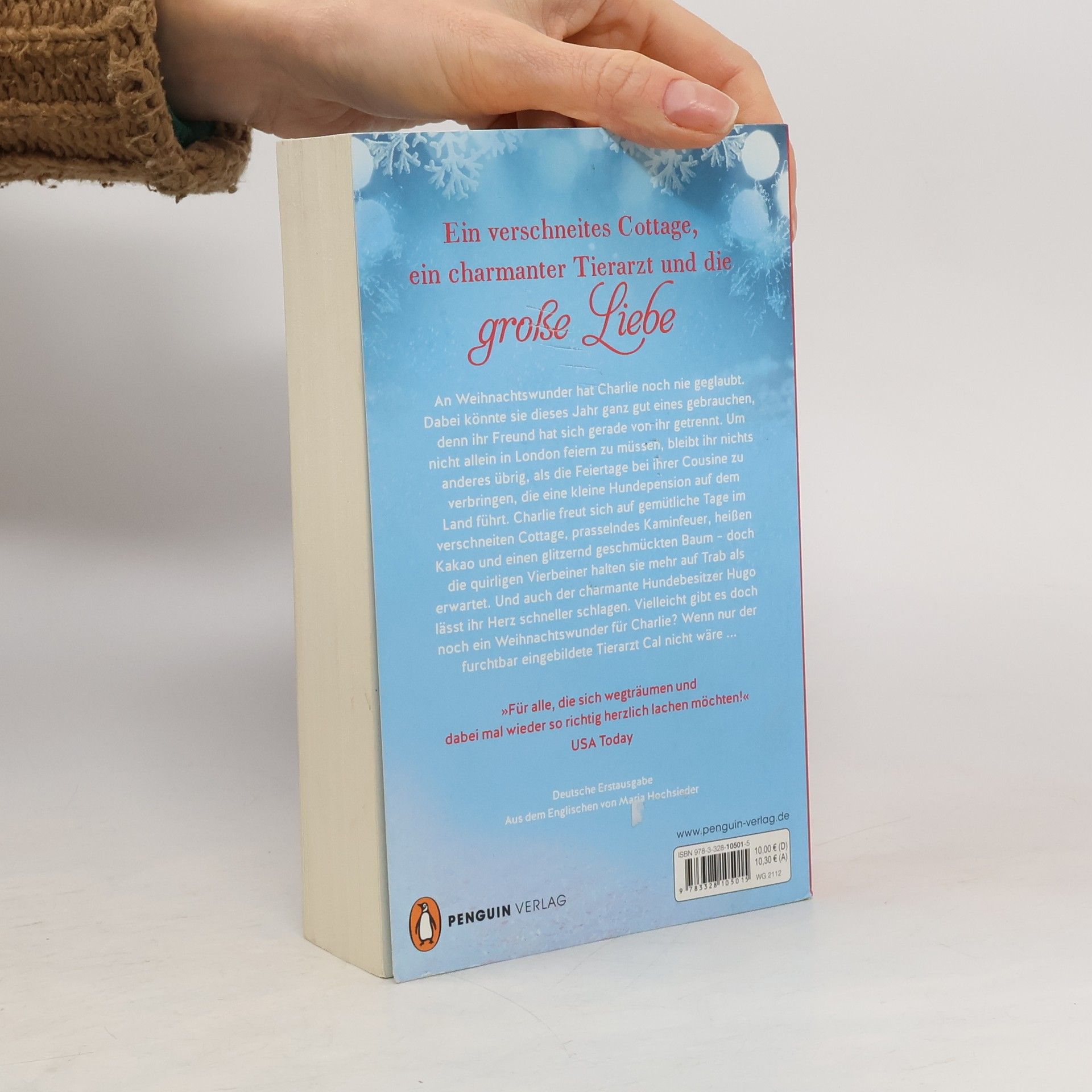 So wunderbar gemütlich wie ein Winterabend vor dem Kamin An Weihnachtswunder hat Charlie noch nie geglaubt. Dabei könnte sie dieses Jahr ganz gut eines gebrauchen, denn ihr Freund hat sich gerade von ihr getrennt. Um nicht allein in London feiern zu müssen, bleibt ihr nichts anderes übrig, als die Feiertage bei ihrer Cousine zu verbringen, die eine kleine Hundepension auf dem Land führt. Charlie freut sich auf gemütliche Tage im verschneiten Cottage, prasselndes Kaminfeuer, heißen Kakao und einen glitzernd geschmückten Baum – doch die quirligen Vierbeiner halten sie mehr auf Trab als erwartet. Und auch der charmante Hundebesitzer Hugo lässt ihr Herz schneller schlagen. Vielleicht gibt es doch noch ein Weihnachtswunder für Charlie? Wenn nur der furchtbar eingebildete Tierarzt Cal nicht wäre ... In zauberhafter Winter-Romance-Ausstattung.