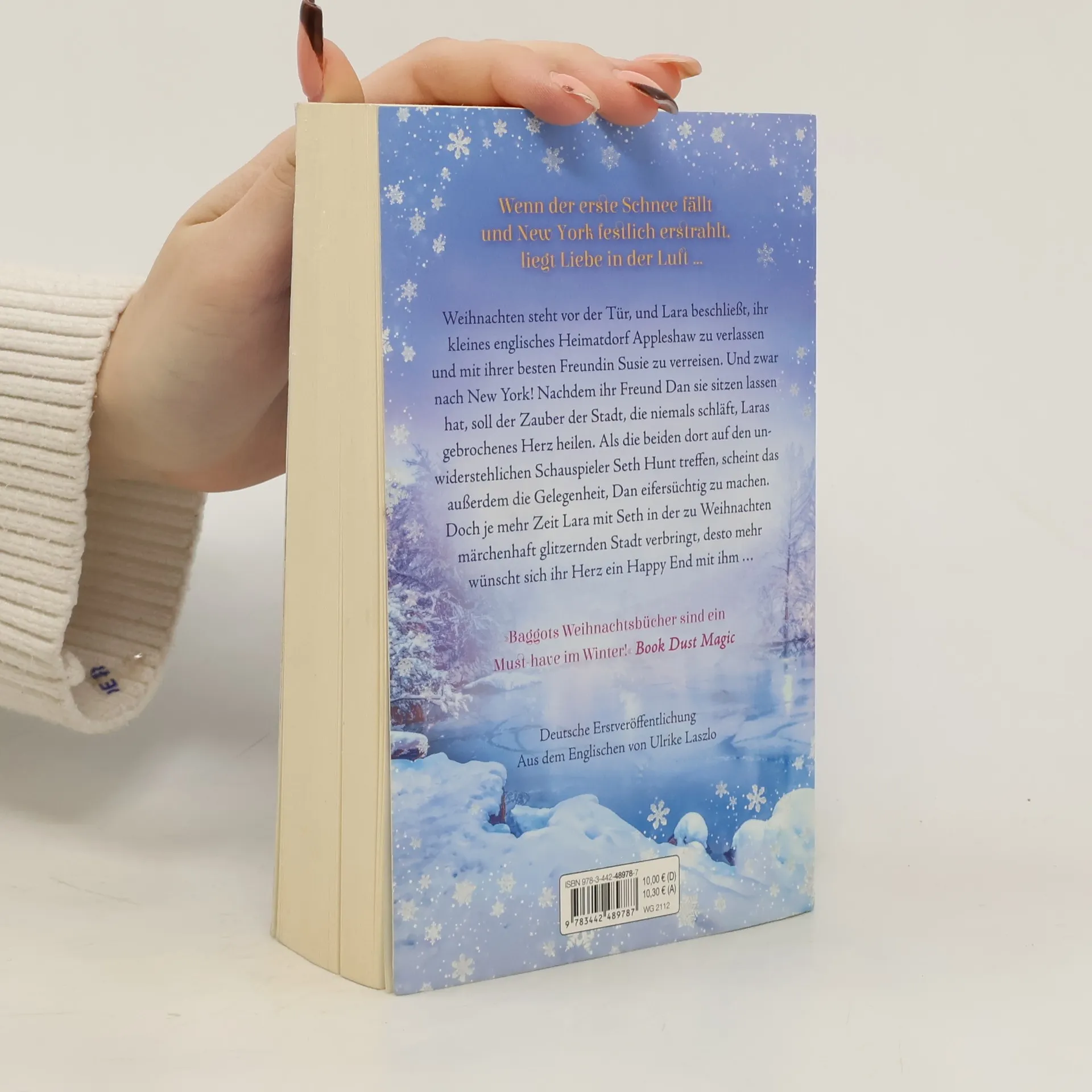 Weihnachten steht vor der Tür, und Lara beschließt, ihr kleines englisches Heimatdorf Appleshaw zu verlassen und mit ihrer besten Freundin Susie zu verreisen. Und zwar nach New York! Nachdem ihr Freund Dan sie verlassen hat, soll der Zauber der Stadt, die niemals schläft, Laras gebrochenes Herz heilen. Als die beiden dort auf den unwiderstehlichen Schauspieler Seth Hunt treffen, scheint das außerdem die Gelegenheit, Dan eifersüchtig zu machen. Doch je mehr Zeit Lara mit Seth in der zu Weihnachten märchenhaft glitzernden Stadt verbringt, desto mehr wünscht sich ihr Herz ein Happy End mit ihm …
