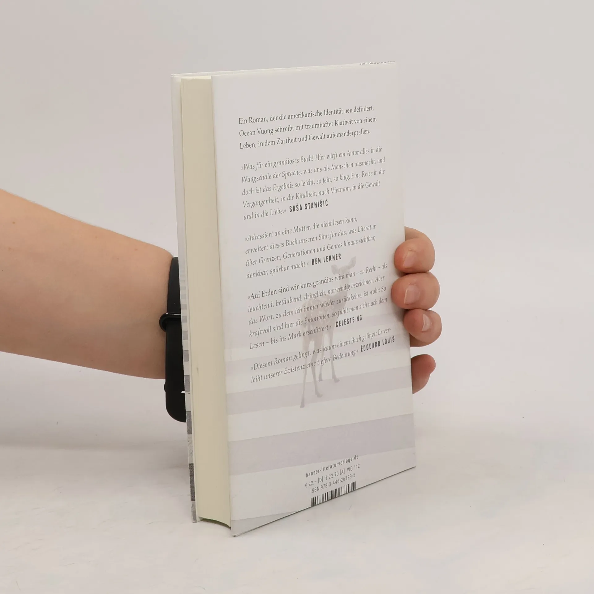 „Ein grandioses Buch! Eine Reise in die Vergangenheit, in die Kindheit, nach Vietnam, in die Gewalt und die Liebe.“ Sasa Stanisic - Der Debütroman von Ocean Vuong „Lass mich von vorn anfangen. Ma …“ Der Brief eines Sohnes an die vietnamesische Mutter, die ihn nie lesen wird. Die Tochter eines amerikanischen Soldaten und eines vietnamesischen Bauernmädchens ist Analphabetin, kann kaum Englisch und arbeitet in einem Nagelstudio. Sie ist das Produkt eines vergessenen Krieges. Der Sohn, ein schmächtiger Außenseiter, erzählt – von der Schizophrenie der Großmutter, den geschundenen Händen der prügelnden Mutter und seiner tragischen ersten Liebe zu einem amerikanischen Jungen. Vuong schreibt mit alles durchdringender Klarheit von einem Leben, in dem Gewalt und Zartheit aufeinanderprallen. Das kraftvollste Debüt der letzten Jahre, geschrieben in einer Sprache von grandioser Schönheit.