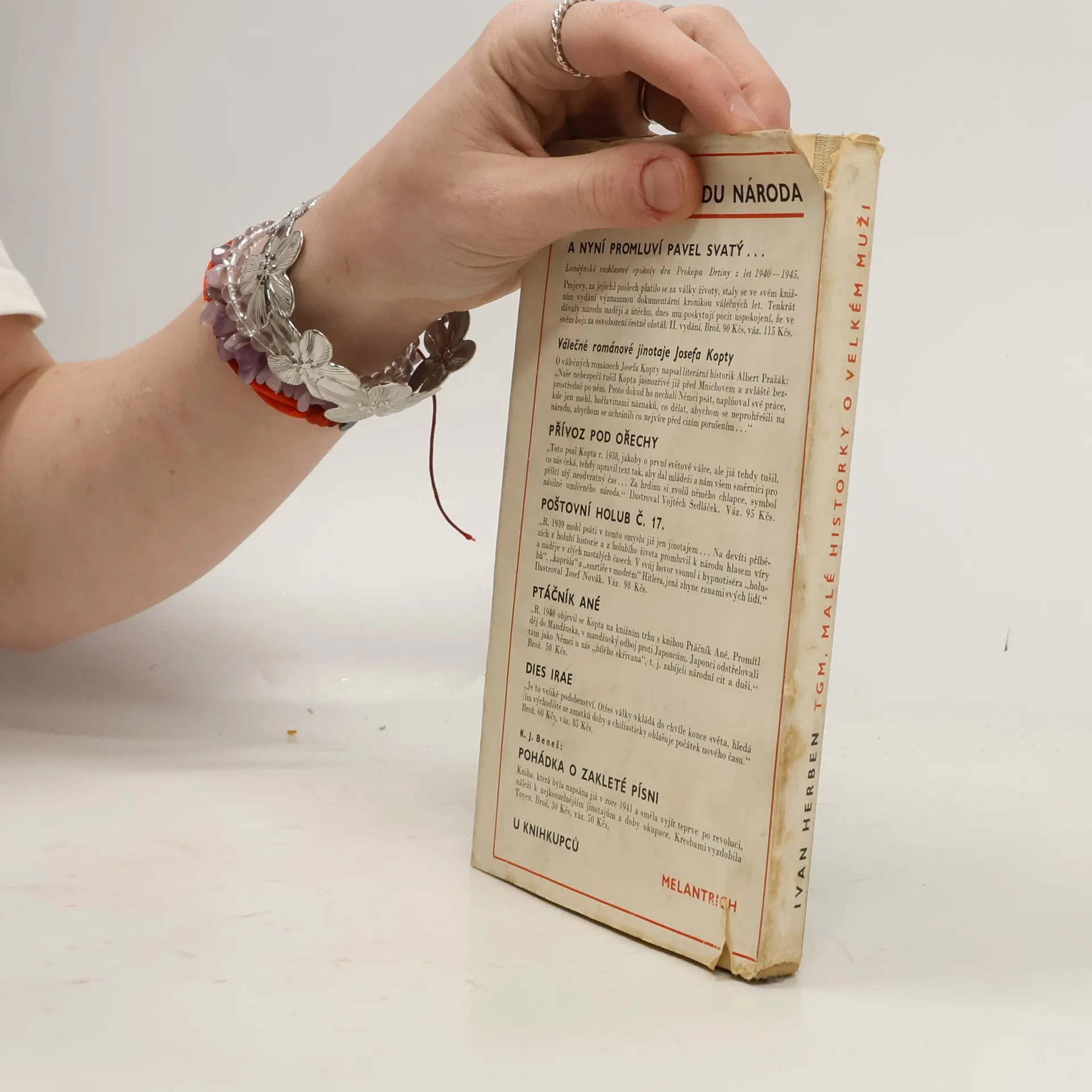 Nazval-li Otokar Fischer T. G. Masaryka rozjasňovatelem, neučinil tak jistě jen pod vlivem studia Masarykových děl politických a filosofických. Masaryk rozjasňoval svou smírnou a všestrannou lidskostí, svou jasnozřivostí pohledu velkého venkovana, svým přirozeným darem logičnosti, jež byla vodítkem jeho soudnosti. To potěšlivé a masarykovsky lidské chápání života postřehli nejvíce osobní přátelé z okruhu Masarykova průzračně čistého soukromí a postihl to i syn Masarykova přítele a spolubojovníka Ivan Herben, který nyní k výročí Masarykovy smrti vydal své "Malé historky o velkém muži" v nakladatelství Melantrich. Jsou to anekdoty a příběhy z Masarykových vzpomínek i ze vzpomínek jeho přátel, čerpaných z let studií i z dalších let profesorských, poslaneckých, válečných i presidentských. Ivan Herben uměl v anekdotické, často zkratkovitě úsečné a přece prudce účinné formě postavit Masaryka do světla velké přirozenosti, jež musí být i dnes vzorem pro myslitele a politiky. Uměl ozřejmit bez pózy muže, jenž sám pózu nenáviděl. Uměl ukázat jeho smích a radost. "Malé historky o velkém muži" byly - jak Herben prozrazuje v závěru - vyhledávanou četbou v koncentrácích a na bojištích, všude tam, kde se ve jménu Masarykově věřilo a bojovalo. Svobodné slovo, 14.IX.1947