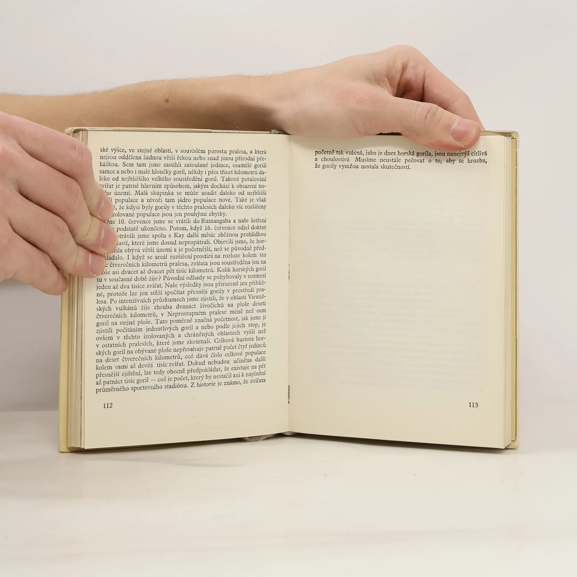 Populární zpracování výsledků průzkumu gorilami obývaných afrických území. Vedle nových poznatků o gorilách obsahuje kniha řadu mnohdy dobrodružných autorových osobních zážitků. Všímá si, jaký mají gorily sdělovací systém, v čem se podobají lidem a líčí jejich společenské, byť primitivní vztahy. Autor popisuje i život jiných zvířat, s nimiž se na svých toulkách setkal.