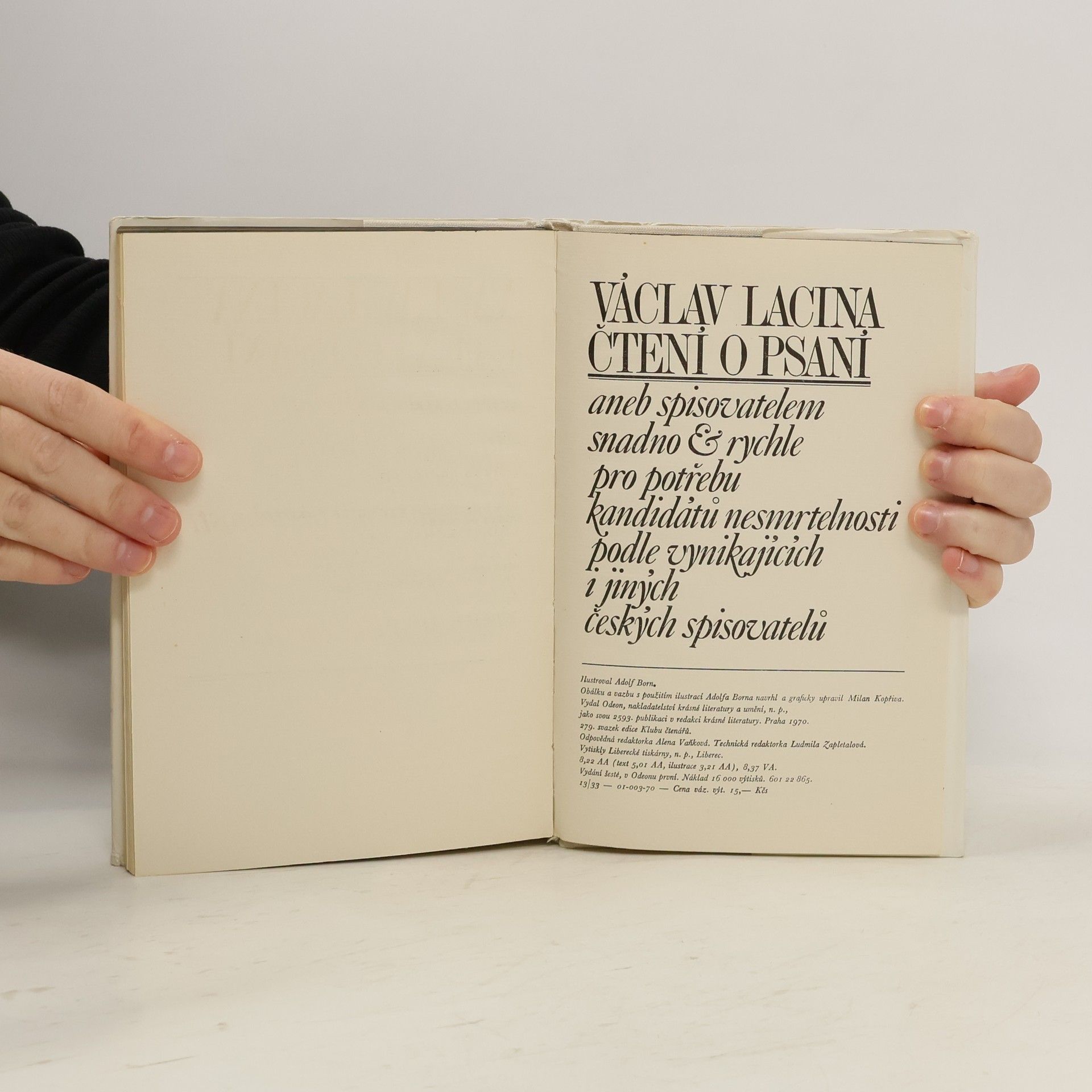 Čtení o psaní aneb spisovatelem snadno & rychle pro potřebu kandidátů nesmrtelnosti podle vynikajících i jiných českých spisovatelů, Václav Lacina, Adolf Born