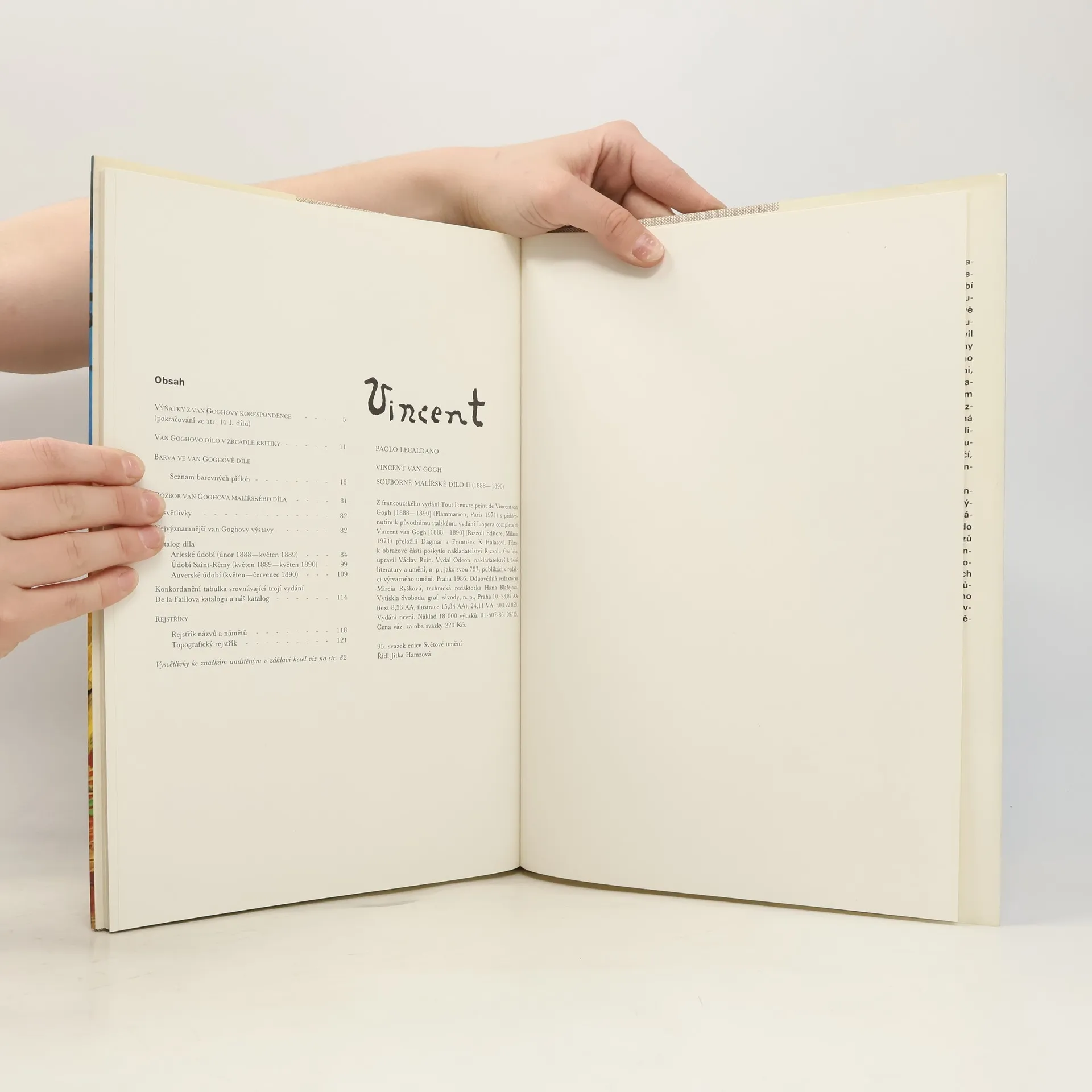 Souborné malířské dílo II (1888–1890). Obsahuje výňatky z van Goghovy korespondence, seznam barevných příloh, nejvýznamnější van Goghovy výstavy, katalog díla, konkordanční tabulku, rejstřík názvů a námětů, topografický rejstřík. Z francouzského vydání Tout l'œuvre peint de Vincent van Gogh [1888–1890] (Flammarion, Paris 1971) s přihlédnutím k původnímu italskému vydání L'opera completa di Vincent van Gogh [1888–1890] (Rizzoli Editore, Milano 1971) přeložili Dagmar a František X. Halasovi. Filmy k obrazové části poskytlo nakladatelství Rizzoli. Graficky upravil Václav Rein.