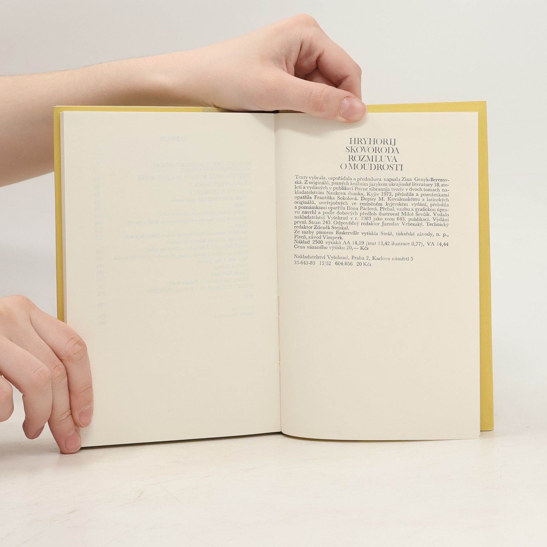 Rozmluva o moudrosti: výbor ze Skovorodova díla. Texty vybrala, uspoř. a předml. naps. Zina Genyk-Berezovská. Z ukr. přel. a pozn. opatřila Františka Sokolová. Dopisy M. Kovalenskému z lat. přel. a pozn. opatřila Ilona Páclová.