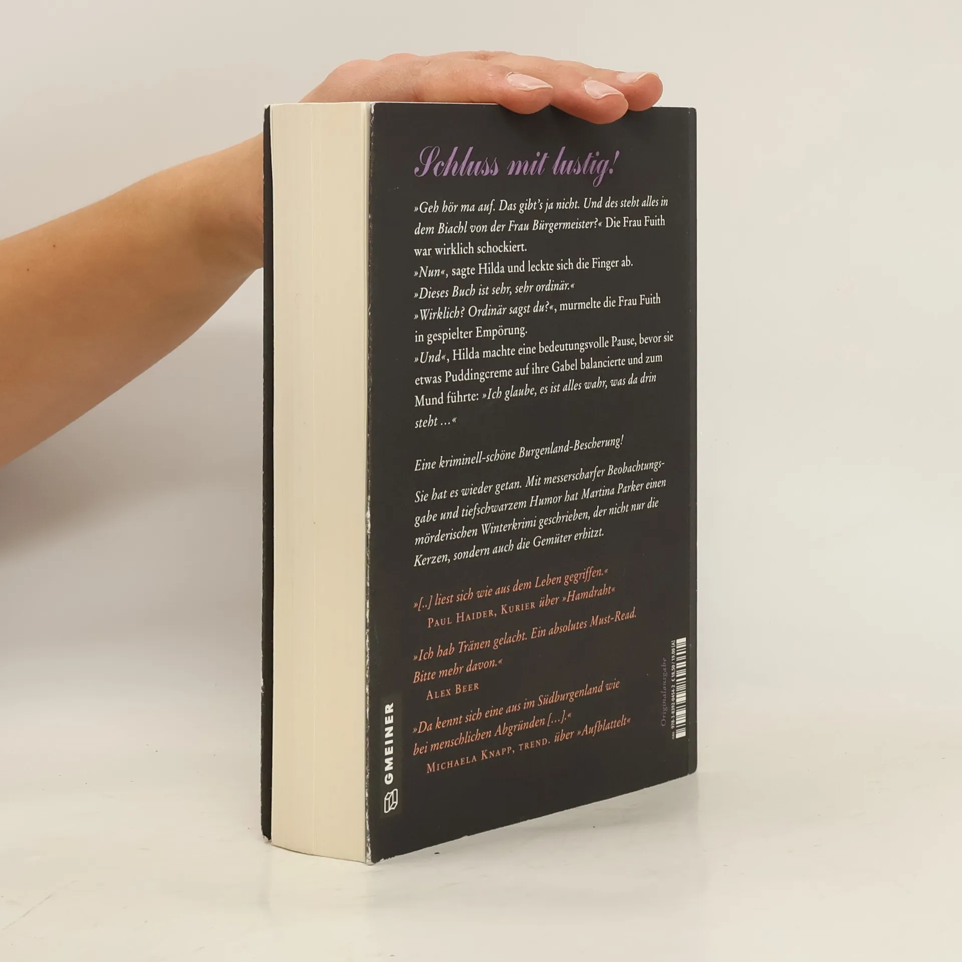 „Geh hör ma auf. Das gibt’s ja nicht. Und des steht alles in dem Biachl von der Frau Bürgermeister?“ Die Frau Fuith war wirklich schockiert. »Nun“, sagte Hilda und leckte sich die Finger ab. „Dieses Buch ist sehr, sehr ordinär.“ „Wirklich? Ordinär sagst du?“, murmelte die Frau Fuith in gespielter Empörung. „Und“, Hilda machte eine bedeutungsvolle Pause, bevor sie etwas Puddingcreme auf ihre Gabel balancierte und zum Mund führte: „Ich glaube, es ist alles wahr, was da drin steht …“ Der Bürgermeister liegt beim Pannonischen Adventmarkt tot unterm Christbaum. Seine Witwe schreibt Erotikliteratur. Ein Zuagroaster macht aus der Madonnenstatue Kleinholz. Und ein Unbekannter stellt seltsame Fragen. Es geht rund im vorweihnachtlichen Südburgenland. Bei den Ermittlungen ist der Gartenklub an vorderster Front dabei. Denn neben Misteln schneiden, Hyazinthen treiben, Grammeln (Grieben) auslassen und Kekse backen, liebt der Klub der Grünen Daumen die Verbrecherjagd. Und dabei sind Tannenläuse im Christbaum wahrlich das kleinste Problem.