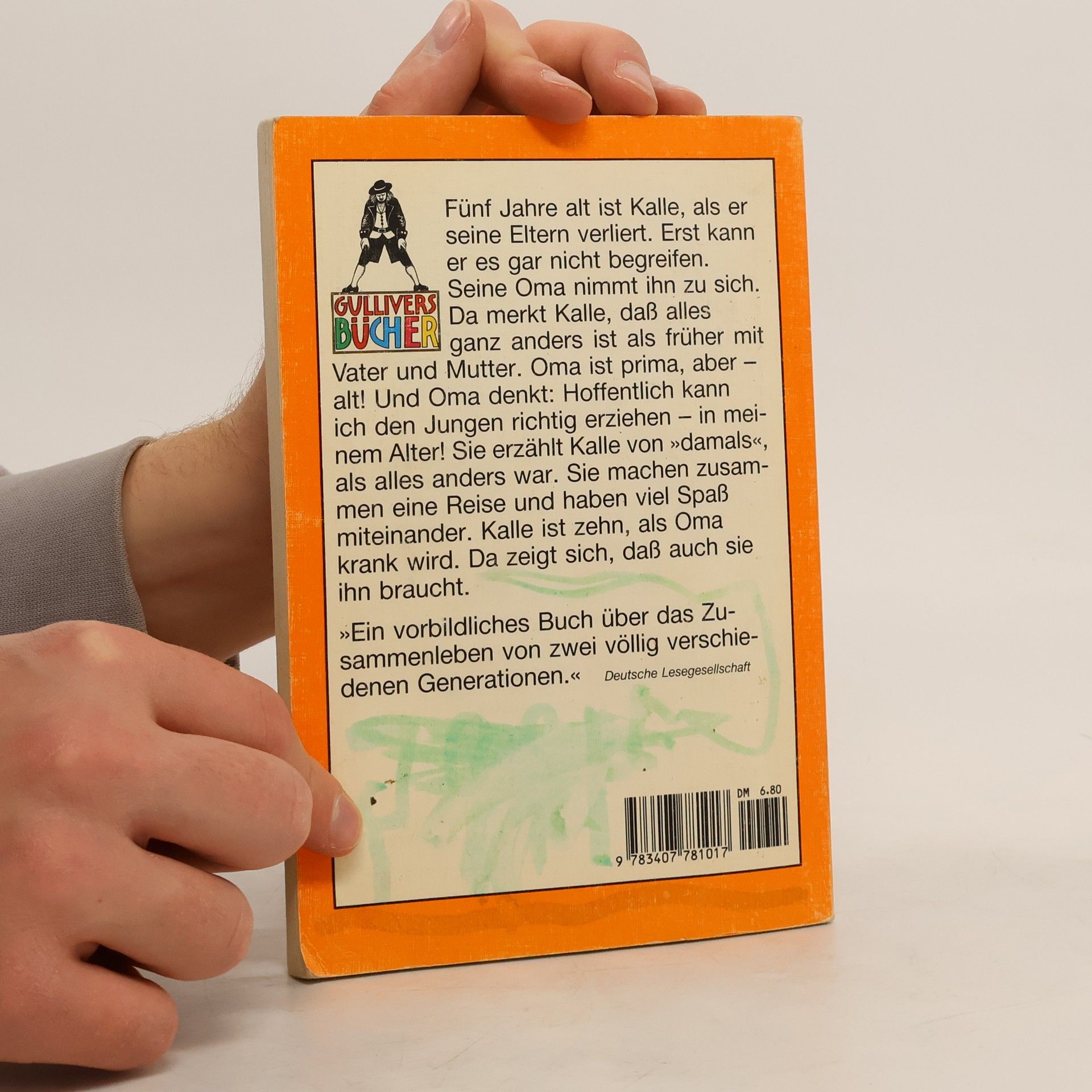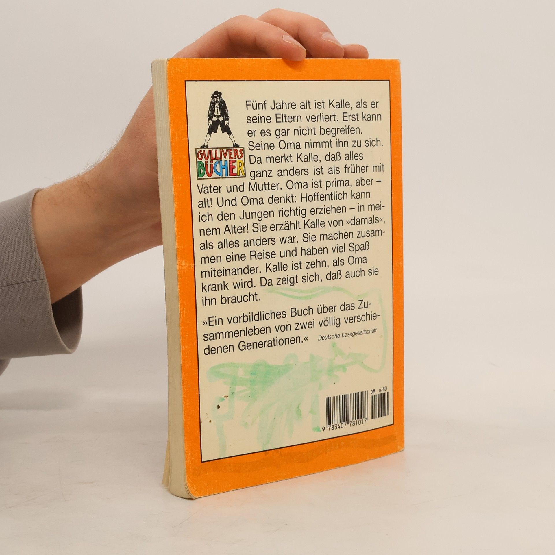Kalle wird mit 5 Jahren von seiner Oma aufgenommen. Fünf Jahre ist Kalle, als er seine Eltern verliert. Erst kann er es gar nicht begreifen. Seine Oma nimmt ihn zu sich. Da merkt Kalle, dass alles ganz anders ist als früher mit Vater und Mutter. Oma ist prima, aber - alt! Und Oma denkt: Hoffentlich kann ich den Jungen richtig erziehen - in meinem Alter! Sie erzählt Kalle von ›damals‹, als alles ganz anders war. Sie machen zusammen eine Reise und haben viel Spaß miteinander. Kalle ist zehn, als Oma krank wird. Da zeigt sich, dass auch sie ihn braucht.