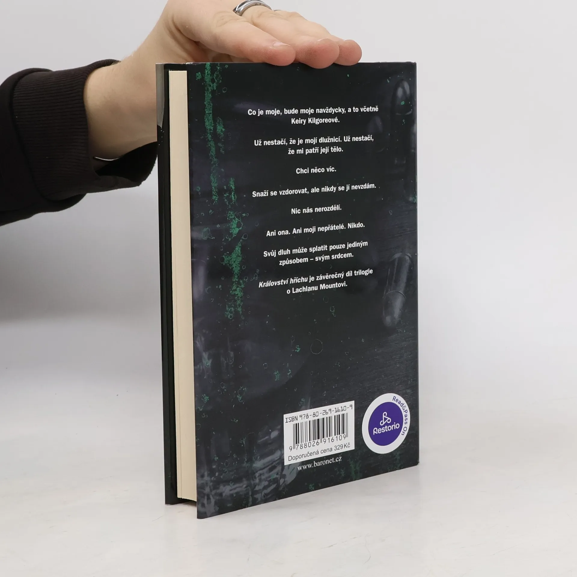Co je moje, bude moje navždycky, a to včetně Keiry Kilgoreové. Už nestačí, že je mojí dlužnicí. Už nestačí, že mi patří její tělo. Chci něco víc. Snaží se vzdorovat, ale nikdy se jí nevzdám. Nic nás nerozdělí. Ani ona. Ani moji nepřátelé. Nikdo. Svůj dluh může splatit pouze jediným způsobem – svým srdcem. Království hříchu je závěrečný díl trilogie o Lachlanu Mountovi.
