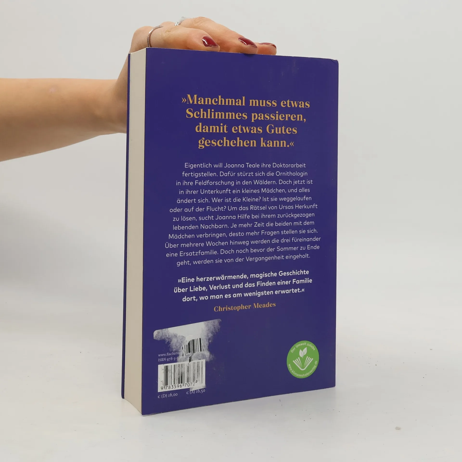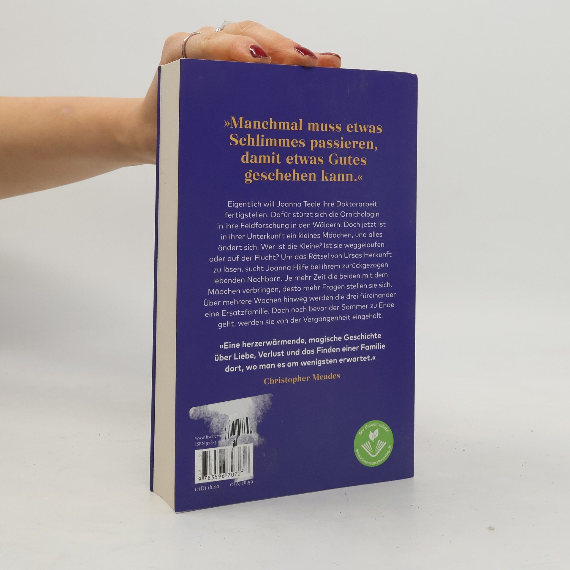 »Eine herzerwärmende, magische Geschichte über Liebe, Verlust und das Finden einer Familie dort, wo man es am wenigsten erwartet.« Christopher Meades Eine Geschichte dreier Menschen, die auf außergewöhnliche Weise zueinander finden Was soll sie jetzt tun? Joanna ist sich nicht sicher. Schmutzig, barfuß, in Pyjamahosen und völlig zerzaust steht das kleine Mädchen da gegenüber von Joannas Haus am Rande des Waldes. Sie sagt, dass sie seit gestern nichts getrunken und gegessen hat. Was soll Joanna jetzt tun? Sie muss die Polizei alarmieren, doch das Mädchen sagt, dass sie dann wegrennen wird. Ursa will nicht mehr von Joannas Seite weichen. Was ist dem Mädchen nur passiert? Wieso hat sie solche Angst? Erst einmal muss Joanna sie versorgen und dann eine Lösung finden. Um herauszufinden woher das Mädchen kommt, bittet Joanna ihren Nachbarn Gabe Nash um Hilfe. Nach und nach entsteht eine enge Bindung zwischen dreien, die zeigt, wie man nach einer schweren Zeit wieder Vertrauen fasst und Liebe findet. In Glendy Vanderahs herausragenden Roman wird die Geschichte einer starken, selbstbewussten Frau, eines mysteriösen, hochbegabten Mädchens und eines zurückgezogenen Mannes erzählt, die auf ganz besondere Weise zu einer Familie finden.
