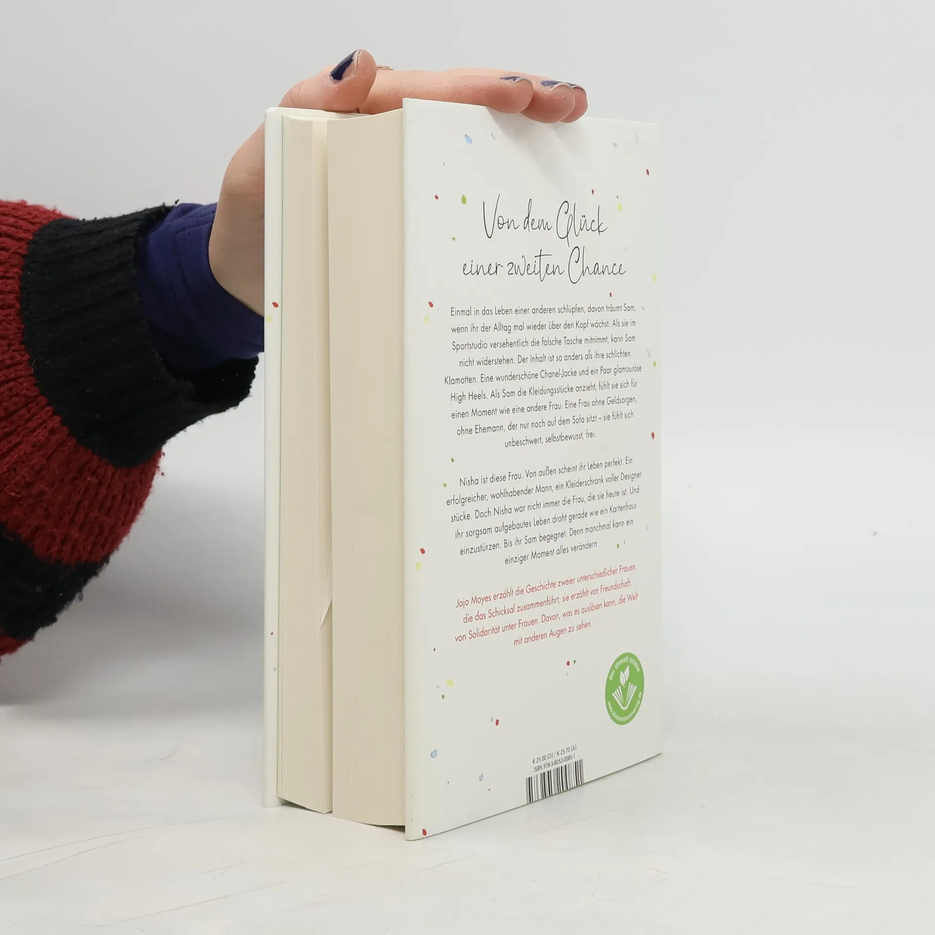 Mit «Ein ganzes halbes Jahr» hat Jojo Moyes Millionen Leser: innen-Herzen erobert. Ihre Romane sind unvergleichlich, lassen uns mitfühlen, bringen uns zum Weinen und zum Lachen. In ihrem neuen Roman erzählt Jojo Moyes die Geschichte zweier ungleicher Frauen, die das Schicksal zusammenführt. Einmal in das Leben einer anderen schlüpfen, davon träumt Sam, wenn ihr der Alltag mal wieder über den Kopf wächst. Als sie im Sportstudio versehentlich die falsche Tasche mitnimmt, kann sie nicht widerstehen. Der Inhalt ist so anders als ihre schlichten Klamotten. Eine wunderschöne Chanel-Jacke und ein Paar glamouröse High Heels. Als Sam die Kleidungsstücke anzieht, fühlt sie sich für einen Moment wie eine andere Frau. Eine Frau ohne Geldsorgen, ohne Ehemann, der nur noch auf dem Sofa sitzt - sie fühlt sich unbeschwert, selbstbewusst, frei. Nisha ist diese Frau. Von außen scheint ihr Leben perfekt. Ein erfolgreicher, wohlhabender Mann, ein Kleiderschrank voller Designerstücke. Doch Nisha war nicht immer die Frau, die sie heute ist. Und ihr sorgsam aufgebautes Leben droht gerade wie ein Kartenhaus einzustürzen. Bis ihr Sam begegnet. Denn manchmal kann ein einziger Moment alles verändern. Jojo Moyes erzählt die Geschichte von Sam und Nisha, sie erzählt von Freundschaft, von Solidarität unter Frauen. Davon, was es auslösen kann, die Welt mit anderen Augen zu sehen. Und von dem Glück einer zweiten Chance.