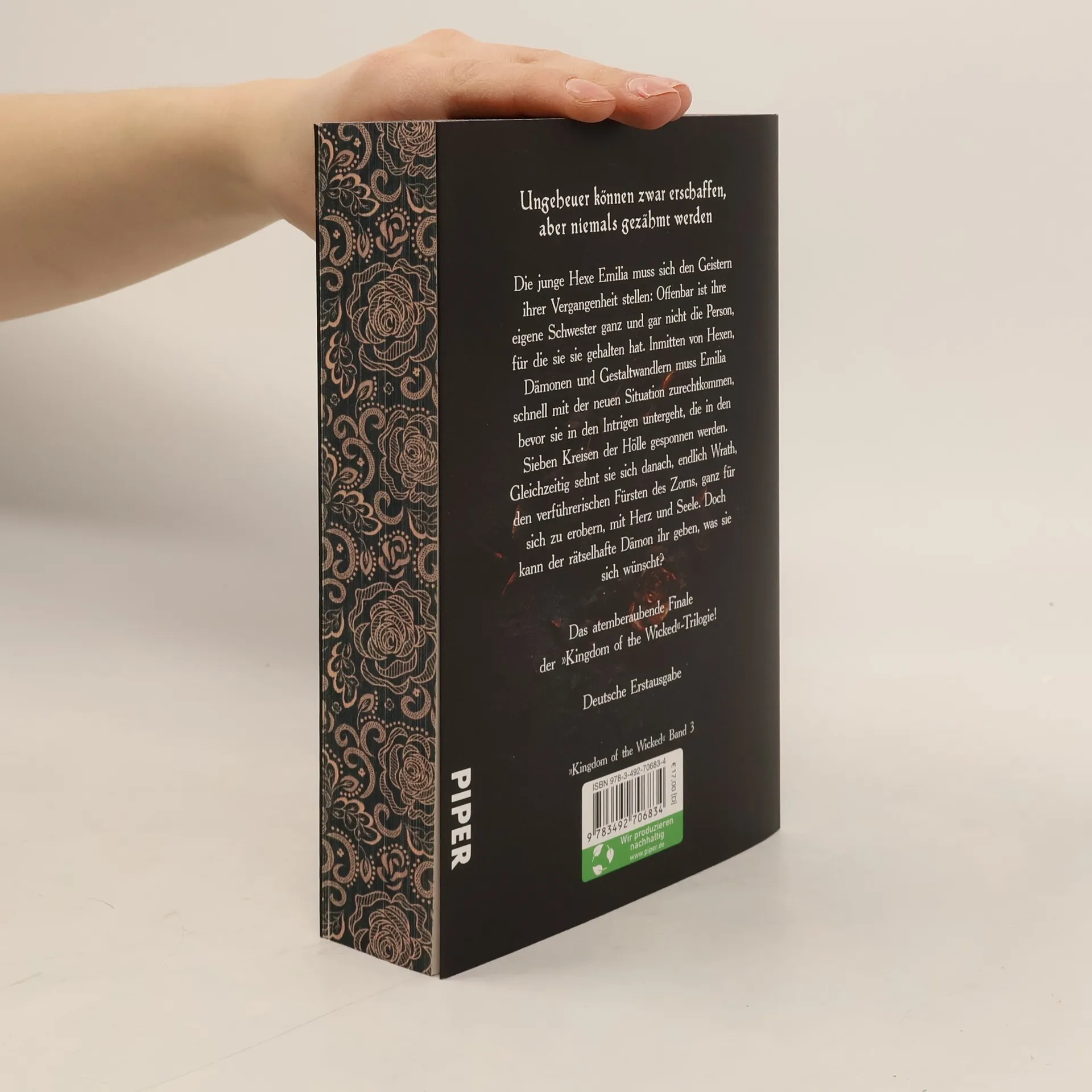 Eine Liebe, mächtiger als das Schicksal ... das atemberaubende Finale der »Kingdom of the Wicked«-Trilogie Noch immer ist die junge Hexe Emilia in der Hölle und muss sich nun den Geistern ihrer Vergangenheit stellen: Sie hat herausgefunden, dass ihre eigene Schwester offenbar ganz und gar nicht die Person ist, für die sie sie gehalten hat. Inmitten von Hexen, Dämonen und Gestaltwandlern muss Emilia schnell mit der neuen Situation zurechtkommen, bevor sie in den Intrigen der Sieben Kreise untergeht. Gleichzeitig sehnt sie sich danach, endlich Wrath, den verführerischen Fürsten des Zorns, ganz für sich zu erobern, mit Herz und Seele. Doch kann der rätselhafte Dämon ihr geben, was sie sich wünscht? ***»Kingdom of the Wicked: Die Göttin der Rache« ist der dritte Band der »Kingdom of the Wicked«-Reihe*** Band 1: Kingdom of the Wicked – Der Fürst des Zorns Band 2: Kingdom of the Wicked – Die Königin der Hölle Band 3: Kingdom of the Wicked – Die Göttin der Rache