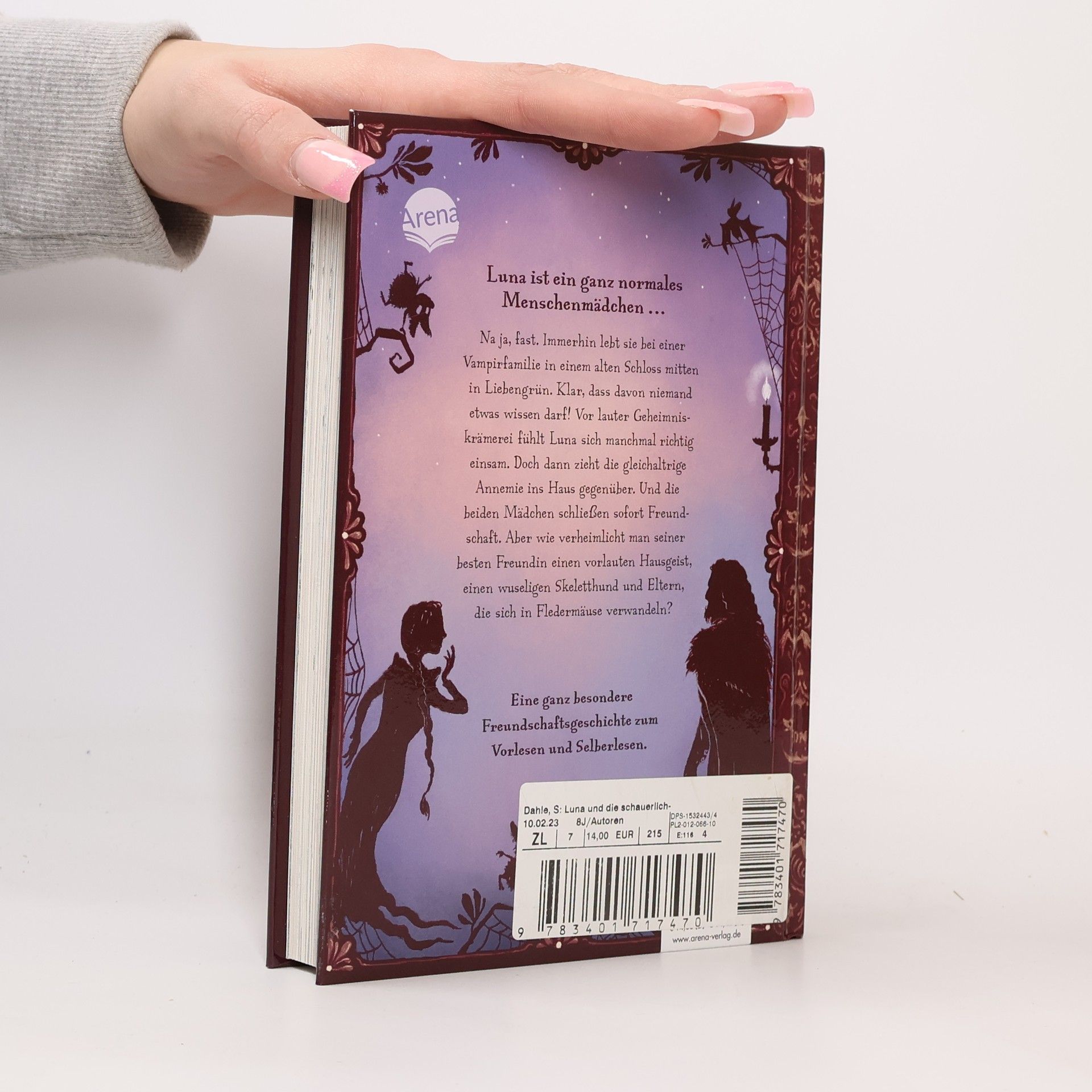 Das magische Kinderbuchdebüt der Bestseller-Illustratorin Stefanie Dahle. Skurril, liebenswert und einfach bezaubernd! Luna ist ein ganz normales Menschenmädchen … na ja, fast. Immerhin lebt sie bei einer Vampirfamilie in einem alten Schloss mitten in Liebengrün. Klar, dass davon niemand etwas wissen darf! Vor lauter Geheimniskrämerei fühlt Luna sich richtig einsam. Doch dann zieht die gleichaltrige Annemie ins Haus gegenüber. Und die beiden Mädchen schließen sofort Freundschaft. Aber wie verheimlicht man seiner besten Freundin einen vorlauten Hausgeist, einen wuseligen Skeletthund und Eltern, die sich in Fledermäuse verwandeln? Eine ganz besondere Freundschaftsgeschichte - mit zauberhaften, zweifarbigen Illustrationen auf jeder Seite. Opulent und liebevoll gestaltet von Stefanie Dahle. Zum Vorlesen und Selberlesen.
