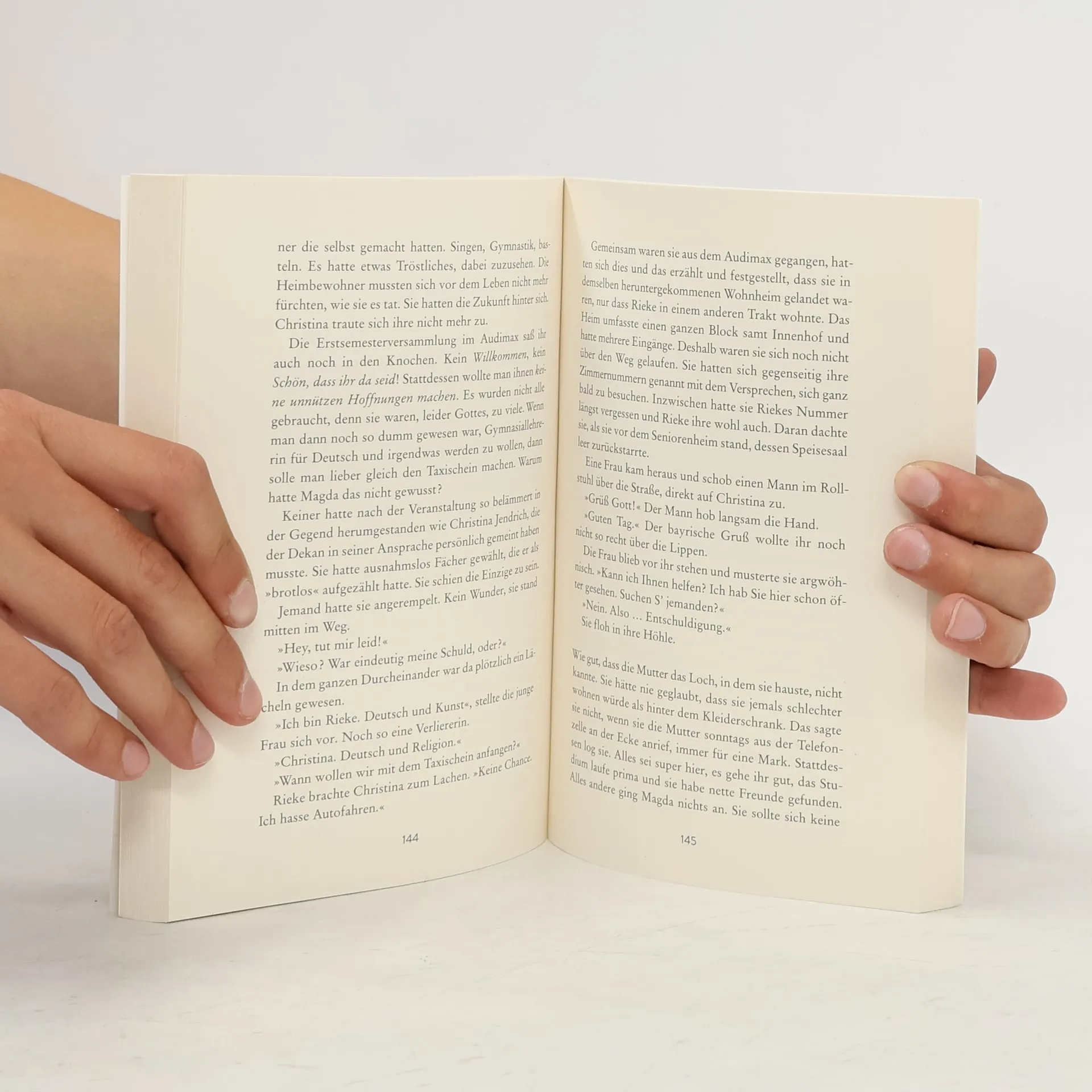 Die Schwestern Enne und Suse wachsen in den 1970ern in einem Dorf in Vorpommern auf, wo es kaum mehr gibt als die Fahrradfähre nach Usedom und das so abgelegen ist, dass Fremde schon einmal befürchten, »über den Rand zu kippen«. Suse ist oft krank und Enne muss zurückstecken, weil die Sorge und Zuwendung der Eltern vor allem Suse gilt, was das Verhältnis der beiden Schwestern nicht ganz einfach macht. Es gibt nur wenige Momente der Nähe zwischen ihnen. Als 1989 Ungarn die Grenzen öffnet, nutzt Suse die Chance und verschwindet in den Westen. Sie lässt nie wieder von sich hören, die Familie rätselt jahrzehntelang darüber, was aus ihr geworden ist. Enne versucht sich in Berlin als Schauspielerin, aber der große Durchbruch bleibt aus und sie geht wieder zurück in ihr Heimatdorf. Dreißig Jahre nach Suses Verschwinden zieht eine geheimnisvolle Frau Pohl bei Enne gegenüber ein und die Gerüchte, wer das sein könnte, schießen ins Kraut … In Eine andere Zeit erzählt Helga Bürster von einer, die geblieben ist. Und immer wieder auch von den Nachwirkungen der Wende, vom Verschwinden und vom Bleiben, von Identität und Identitätsverlust.