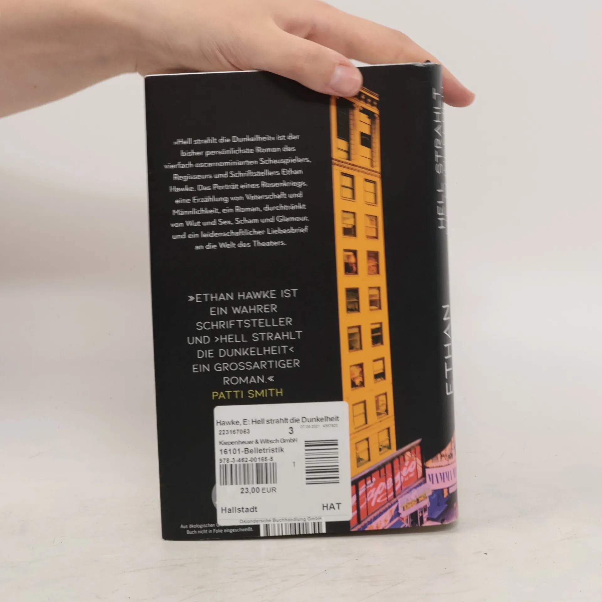 »Ethan Hawke ist ein wahrer Schriftsteller und ›Hell strahlt die Dunkelheit‹ ein großartiger Roman.« Patti Smith. »Hell strahlt die Dunkelheit« ist der bisher persönlichste Roman des vierfach oscarnominierten Schauspielers, Regisseurs und Schriftstellers Ethan Hawke und dazu eine Ode an das Theater. Ein erfolgreicher Kinoschauspieler ist nach dem Scheitern seiner Ehe mit einer weltberühmten Sängerin vor allem von sich selbst angewidert, denn seine Untreue hat dazu geführt, dass die Familie zerbricht – und das unter den Augen der Öffentlichkeit. Ungeschickt versucht er, die Trümmer seines Lebens mit Whiskey und Sex zusammenzuhalten. Was ihn rettet, ist das Theater: Die Proben für eine Inszenierung von »Heinrich IV« am Broadway unter der Leitung eines brillanten Regisseurs fordern ihn wie nie zuvor. Als einziger Kinostar unter sehr routinierten Theaterschau- spieler*innen mit ständigen Selbstzweifeln konfrontiert, wächst er über sich hinaus. Hybris und Demut im Dauerkampf. Ist es möglich, weltberühmt und gleichzeitig ein guter Mensch zu sein? »Hell strahlt die Dunkelheit« ist ein Roman über Scham, Glamour und den Glauben an die moralische Kraft der Kunst. Das Porträt eines Rosenkriegs, eine Erzählung von Vaterschaft und Männlichkeit, ein Roman, durchtränkt von Wut und Sex, Sehnsucht und Verzweiflung; und ein leidenschaftlicher Liebesbrief an die Welt des Theaters.