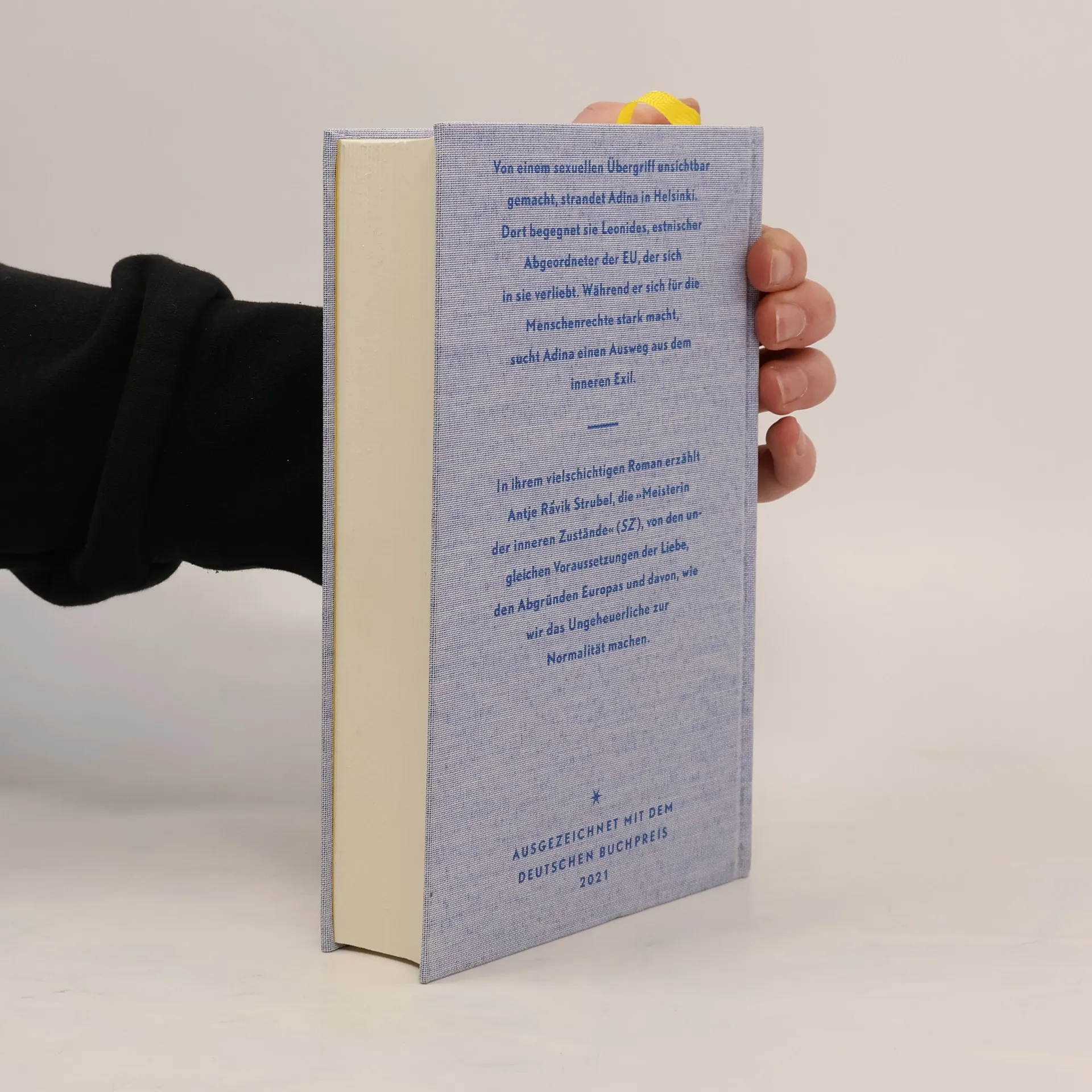 Adina wuchs als letzter Teenager ihres Dorfs im tschechischen Riesengebirge auf und sehnte sich schon als Kind in die Ferne. Bei einem Sprachkurs in Berlin lernt sie die Fotografin Rickie kennen, die ihr ein Praktikum in einem neu entstehenden Kulturhaus in der Uckermark vermittelt. Unsichtbar gemacht von einem sexuellen Übergriff, den keiner ernst nimmt, strandet Adina nach einer Irrfahrt in Helsinki. Im Hotel, in dem sie schwarzarbeitet, begegnet sie dem estnischen Professor Leonides, Abgeordneter der EU, der sich in sie verliebt. Während er sich für die Menschenrechte stark macht, sucht Adina einen Ausweg aus dem inneren Exil.Der Roman von Antje Rávik Strubel, »Blaue Frau«, erzählt aufwühlend von den ungleichen Voraussetzungen der Liebe, den Abgründen Europas und davon, wie wir das Ungeheuerliche zur Normalität machen.