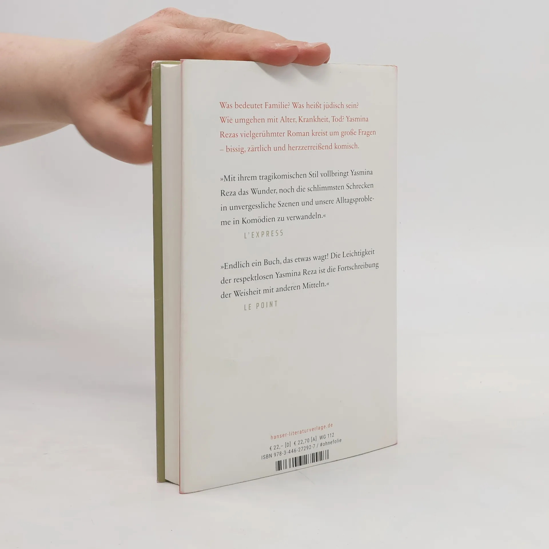 Der neue Roman von Yasmina Reza: „Dieses meisterliche Buch gehört zum Besten, was es derzeit zu lesen gibt.“ Nils Minkmar, Süddeutsche Zeitung Die Geschwister Popper: Serge, verkrachtes Genie und homme à femmes, Jean, der Vermittler und Ich-Erzähler, und Nana, die verwöhnte Jüngste mit dem unpassenden spanischen Mann. Eine jüdische Familie. Nach dem Tod der Mutter entfremdet man sich immer mehr. Zu ihren Lebzeiten hat keiner die alte Frau nach der Shoah und ihren ungarischen Vorfahren gefragt. Jetzt schlägt Serges Tochter Joséphine einen Besuch in Auschwitz vor. Virtuos hält Reza das Gleichgewicht zwischen Komik und Tragik, wenn bei der touristischen Besichtigung die Temperamente aufeinanderprallen. Hinter den messerscharfen Dialogen ist es gerade die existentielle Hilflosigkeit dieser Menschen, die berührt.