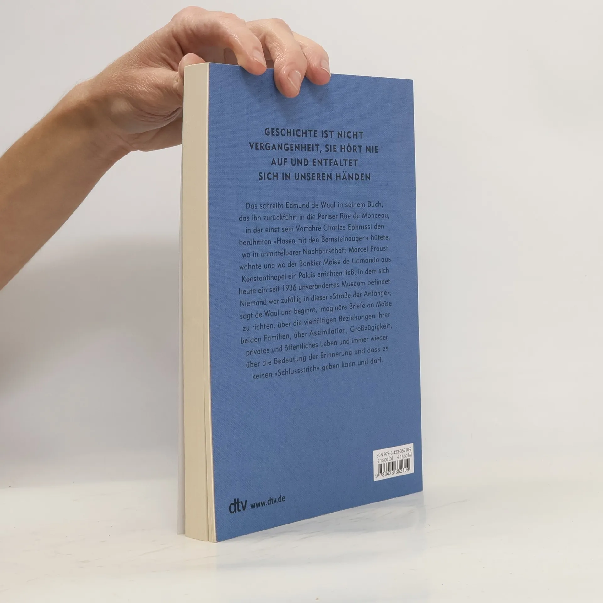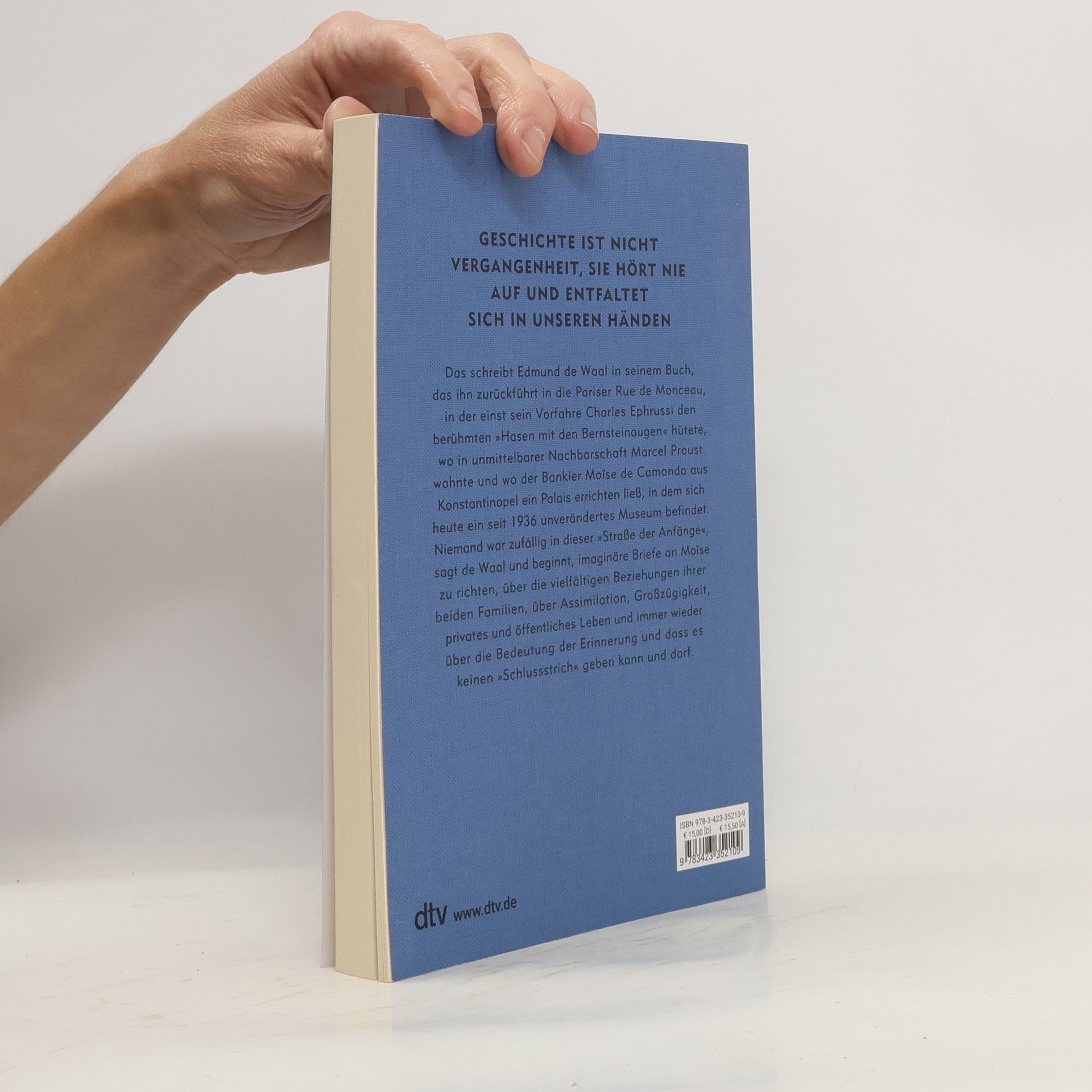 Ein Meisterwerk der Erinnerungskultur Geschichte ist nicht Vergangenheit, sie hört nie auf und entfaltet sich in unseren Händen. In seinem neuen Buch nimmt Edmund de Waal uns mit in die Pariser Rue de Monceau, in der einst sein Vorfahre Charles Ephrussi den berühmten »Hasen mit den Bernsteinaugen« hütete, wo in unmittelbarer Nachbarschaft Marcel Proust wohnte und wo der Bankier Moïse de Camondo aus Konstantinopel ein Palais errichten ließ, in dem sich heute ein seit 1936 unverändertes Museum befindet. Niemand war zufällig in dieser »Straße der Anfänge«, sagt de Waal und beginnt, imaginäre Briefe an Moïse zu richten, über die vielfältigen Beziehungen ihrer beiden Familien, über Assimilation, Großzügigkeit, privates und öffentliches Leben und immer wieder über die Bedeutung der Erinnerung und dass es keinen »Schlussstrich« geben kann und darf.