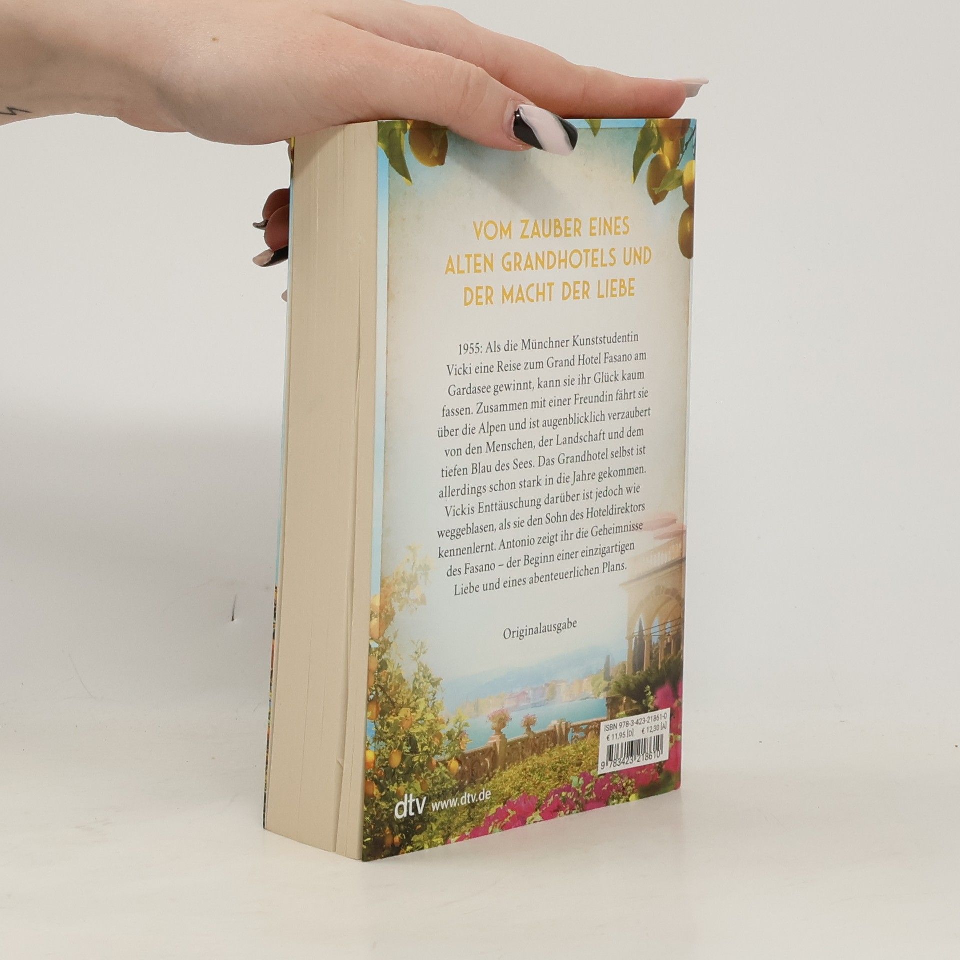 Von Sonne, Zitronenbäumen und einer großen Liebe Die berührende und faszinierende Geschichte einer jungen Frau, die zu Beginn der 1960er-Jahre in Italien das Unmögliche möglich macht, ihren Traum lebt und einen Sehnsuchtsort erschafft: das Grand Hotel Fasano. Als die Münchner Kunststudentin Vicki eine Reise an den Gardasee gewinnt, kann sie ihr Glück kaum fassen. Zusammen mit einer Freundin fährt sie über die Alpen und ist augenblicklich verzaubert von den Menschen, der Landschaft und dem tiefen Blau des Sees. Das Grandhotel selbst ist allerdings eher eine Ruine. Doch Vickis Enttäuschung darüber ist wie weggeblasen, als sie den Sohn des Hoteldirektors kennenlernt. Antonio zeigt ihr die Geheimnisse des »Fasano« – der Beginn einer einzigartigen Liebe und eines abenteuerlichen Plans.
