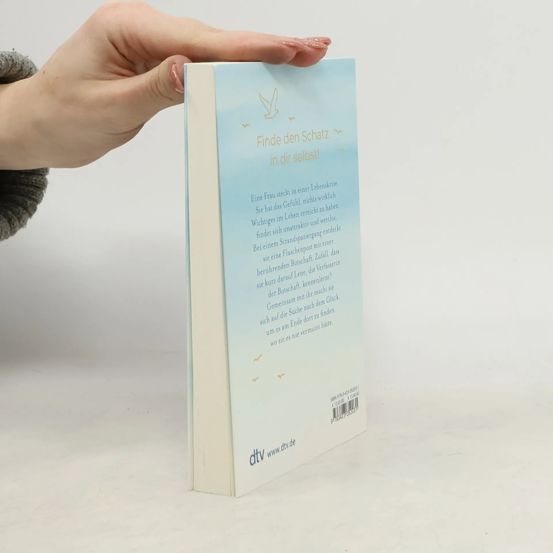 Finde den Schatz in dir selbst! Eine Frau, Mitte vierzig, steckt in einer Lebenskrise. Sie fühlt sich unattraktiv, wertlos, hat das Gefühl, nichts wirklich Wichtiges im Leben erreicht zu haben. Zusammen mit ihrer Freundin Isa möchte sie sich eine kurze Auszeit auf einer kleinen Insel gönnen. Sie hofft auf gute Gespräche und möchte die Tage nutzen, um endlich ein paar Kilo abzunehmen. Doch leider sagt Isa kurzfristig ab. Enttäuscht fährt sie alleine los. Bei einem Strandspaziergang entdeckt sie eine Flaschenpost mit einer berührenden Botschaft. Zufall, dass sie kurz darauf Lene, die Verfasserin der Botschaft, kennenlernt? Gemeinsam mit ihr macht sie sich auf die Suche nach dem Glück, um es am Ende dort zu finden, wo sie es nie vermutet hätte.
