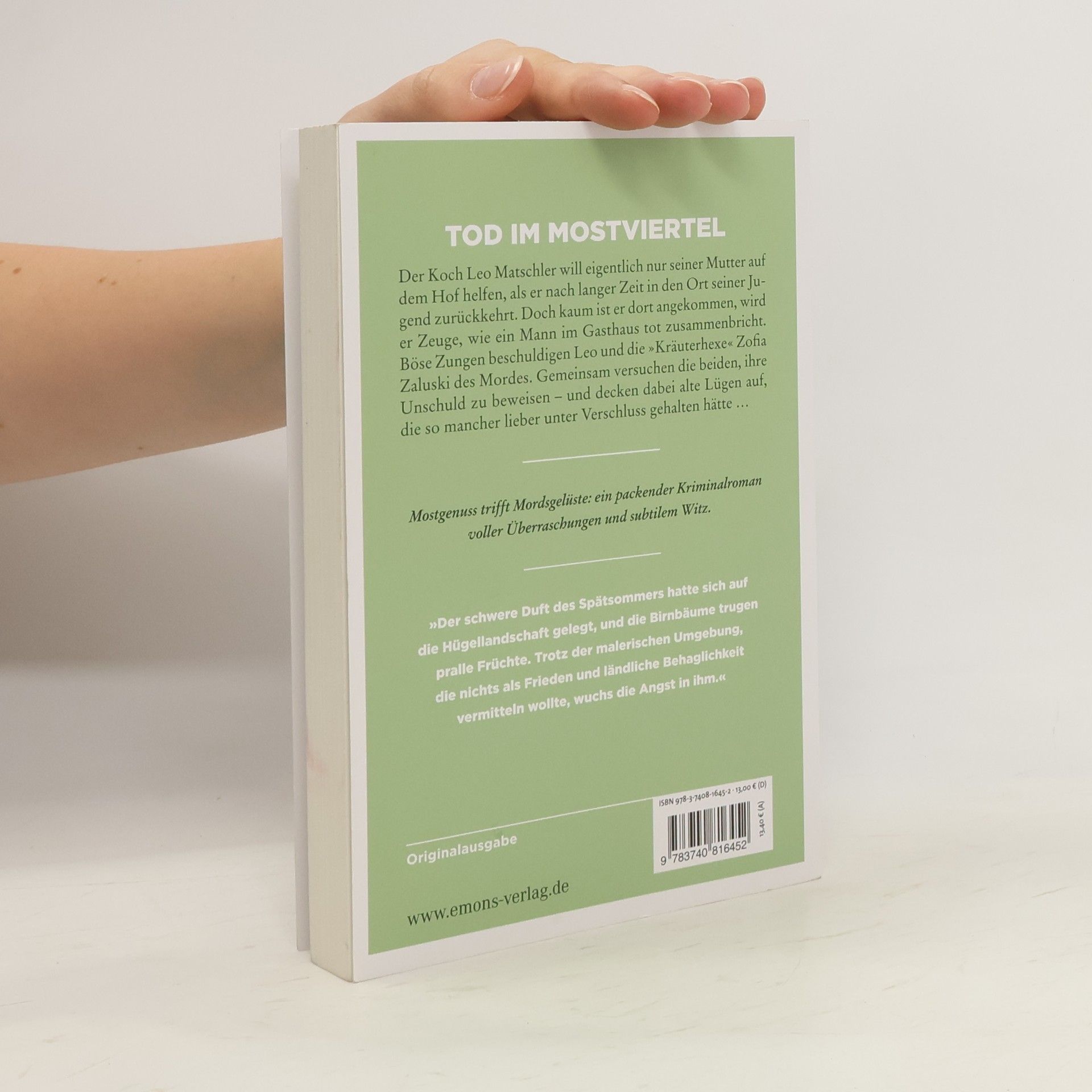 Ein packender Krimi voller Überraschungen und subtilem Witz. Koch Leo Matschler will eigentlich nur seiner Mutter am Mosthof helfen, als er nach langer Zeit in den Ort seiner Jugend zurückkehrt. Doch kaum ist er angekommen, wird er Zeuge, wie ein Mann im Gasthaus tot zusammenbricht. Böse Zungen beschuldigen ihn und die »Kräuterhexe« Zofia Zaluski des Mordes. Gemeinsam versuchen die beiden, ihre Unschuld zu beweisen – und decken dabei alte Lügen auf, die so mancher lieber unter Verschluss gehalten hätte . . .
