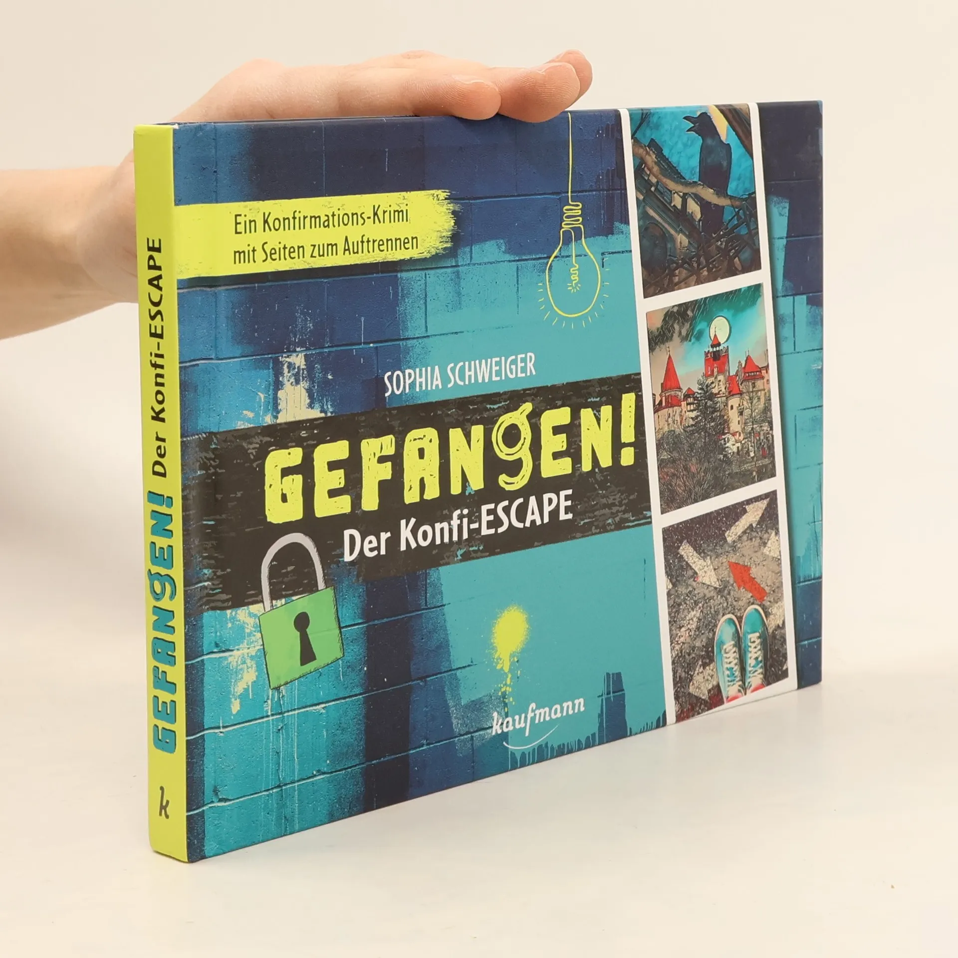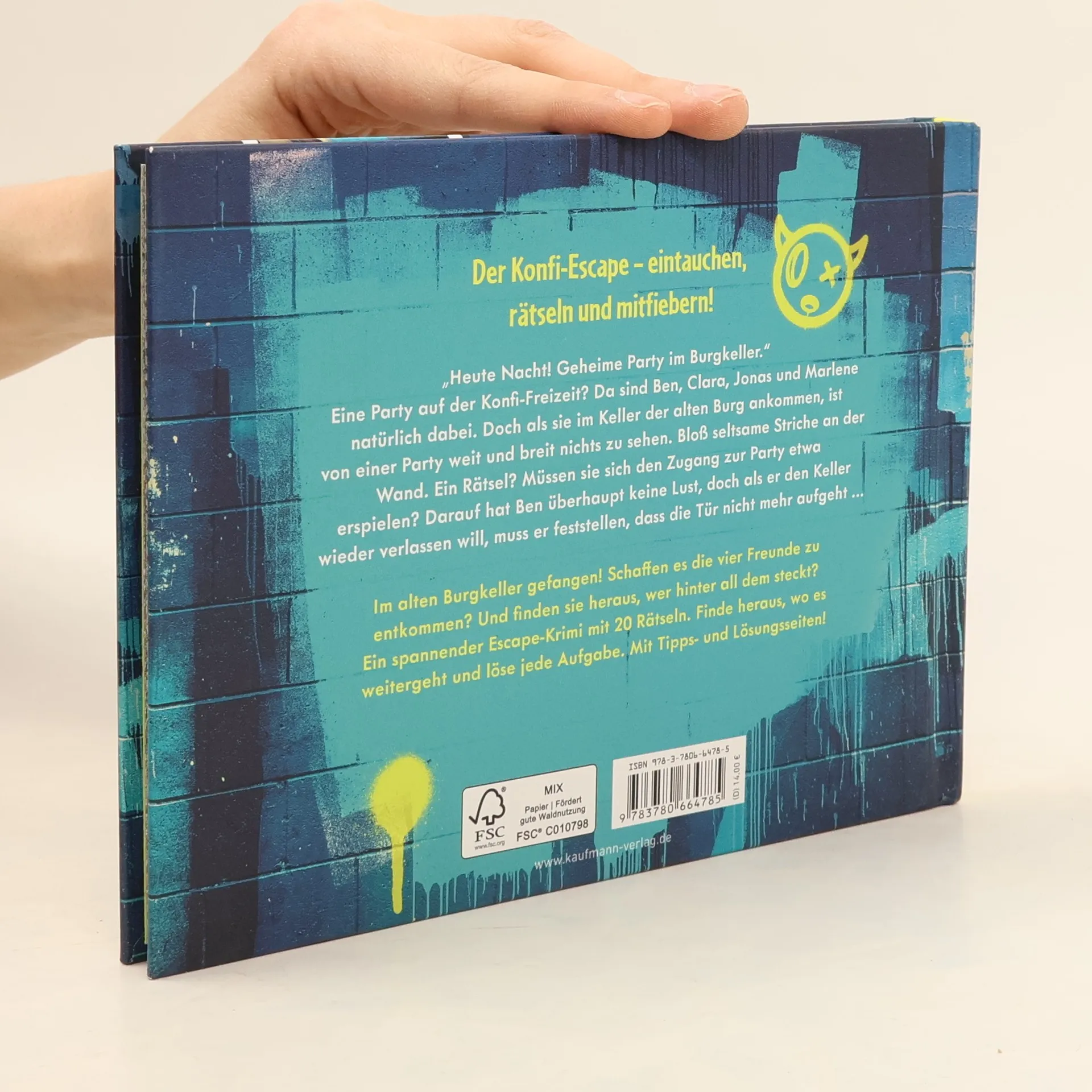 Der neue Konfi-Escape – Eintauchen, rätseln und mitfiebern! Das perfekte Geschenk zur Konfirmation: Eine spannende Geschichte im Escape-Abenteuer-Stil und 20 knifflige Rätsel. Löse die Aufgaben und finde heraus, wo es im Buch weitergeht. Außerdem gibt es Tipps- und Lösungsseiten, wenn man mal nicht weiterweiß. Die Geschichte: „Eine geheime Party? Wie cool war das denn?“ Ben, Clara, Marlene und Jonas lassen sich das auf der Konfi-Freizeit natürlich nicht entgehen. „Hmm, wo sind wohl die anderen alle?“, fragt sich Ben, als er den Keller der alten Burg betritt, doch da ist es schon zu spät. Sie sind in dem unterirdischen Räumen gefangen. Irgendwer scheint sich einen schrecklichen Spaß daraus zu machen sie mit Rätseln und Aufgaben zu quälen. Doch wer steckt dahinter? Und schaffen es die vier Freunde unversehrt aus dem Keller zu entkommen…? So gehts: Die Seiten des Buchs sind verschlossen. Nach jedem Kapitel kann ein neues Seitenpaar aufgetrennt und weiter in die Geschichte eingetaucht werden. Nach jedem Abschnitt muss ein Rätsel gelöst werden um weiterzukommen und hoffentlich letztendlich zu fliehen. Die Lösung des Rätsels zeigt an, an welcher Stelle im Buch weitergelesen werden soll. Perfekt als Konfirmations-Geschenk für Escape Room Fans und Spannungs-, Krimi- und Rätselliebende.