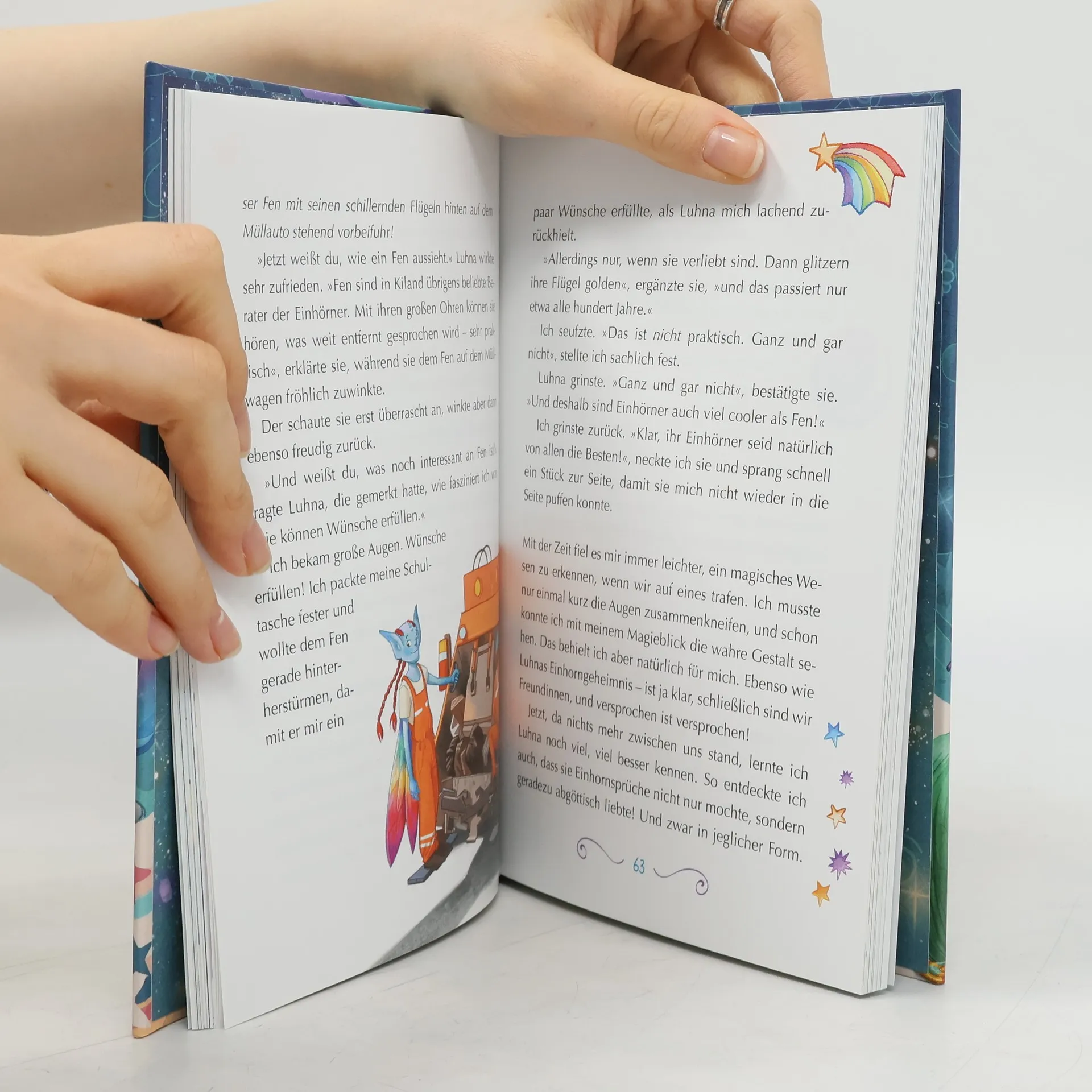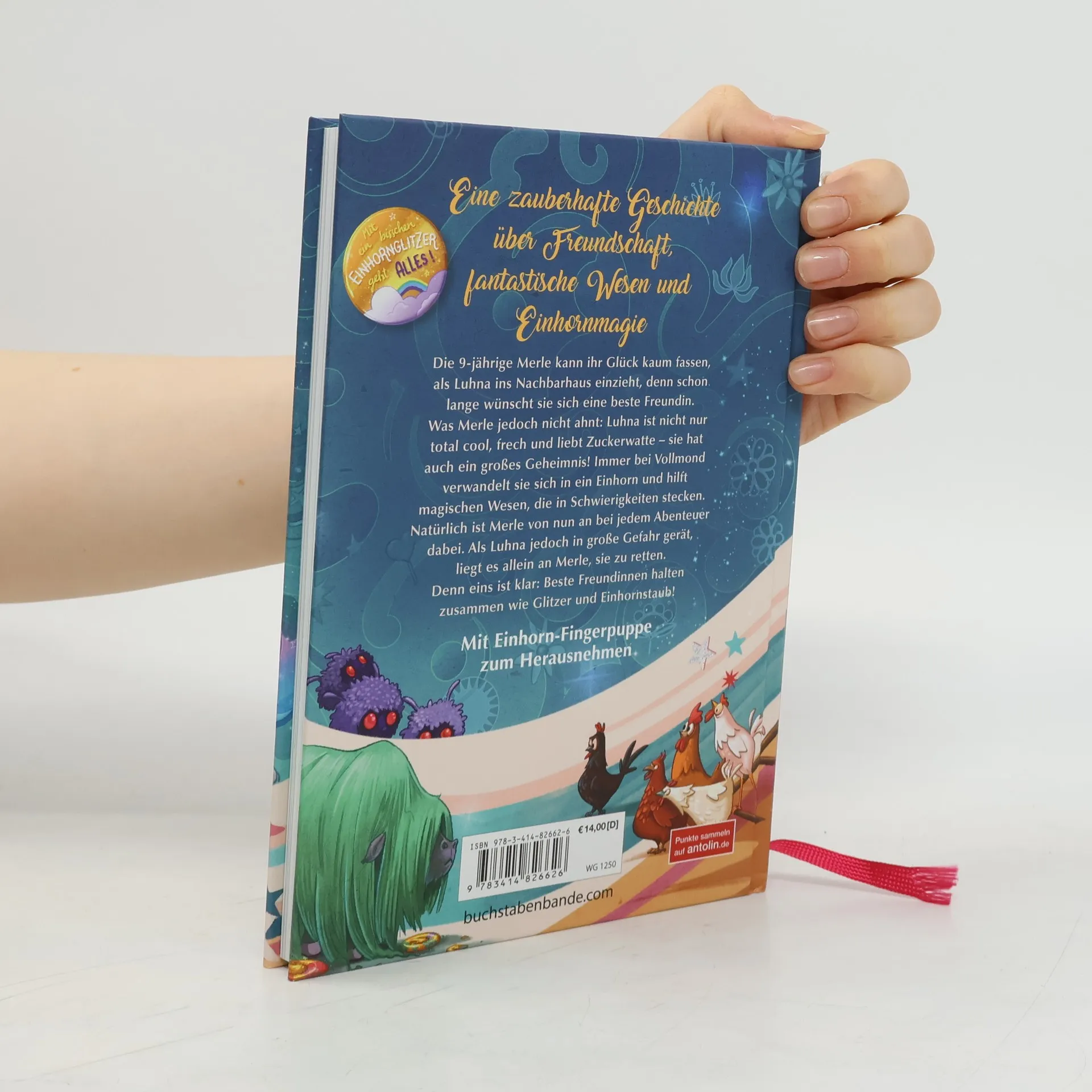 Band 1 der Reihe ab 7 Jahren Eine zauberhafte Geschichte über Freundschaft, fantastische Wesen und Einhornmagie Die 9-jährige Merle kann ihr Glück kaum fassen, als Luhna ins Nachbarhaus einzieht, denn schon lange wünscht sie sich eine beste Freundin. Was Merle jedoch nicht ahnt: Luhna ist nicht nur total cool, frech und liebt Zuckerwatte - sie hat auch ein großes Geheimnis! Immer bei Vollmond verwandelt sie sich in ein Einhorn und hilft magischen Wesen, die in Schwierigkeiten stecken. Natürlich ist Merle von nun an bei jedem Abenteuer dabei. Als Luhna jedoch in große Gefahr gerät, liegt es allein an Merle, sie zu retten. Denn eins ist klar: Beste Freundinnen halten zusammen wie Glitzer und Einhornstaub! Mach den Test! Welches magische Wesen bist du? Neben diesem Quiz findest du auch ein tolles Rezept und eine Fingerpuppe zum Herausnehmen im Buch.