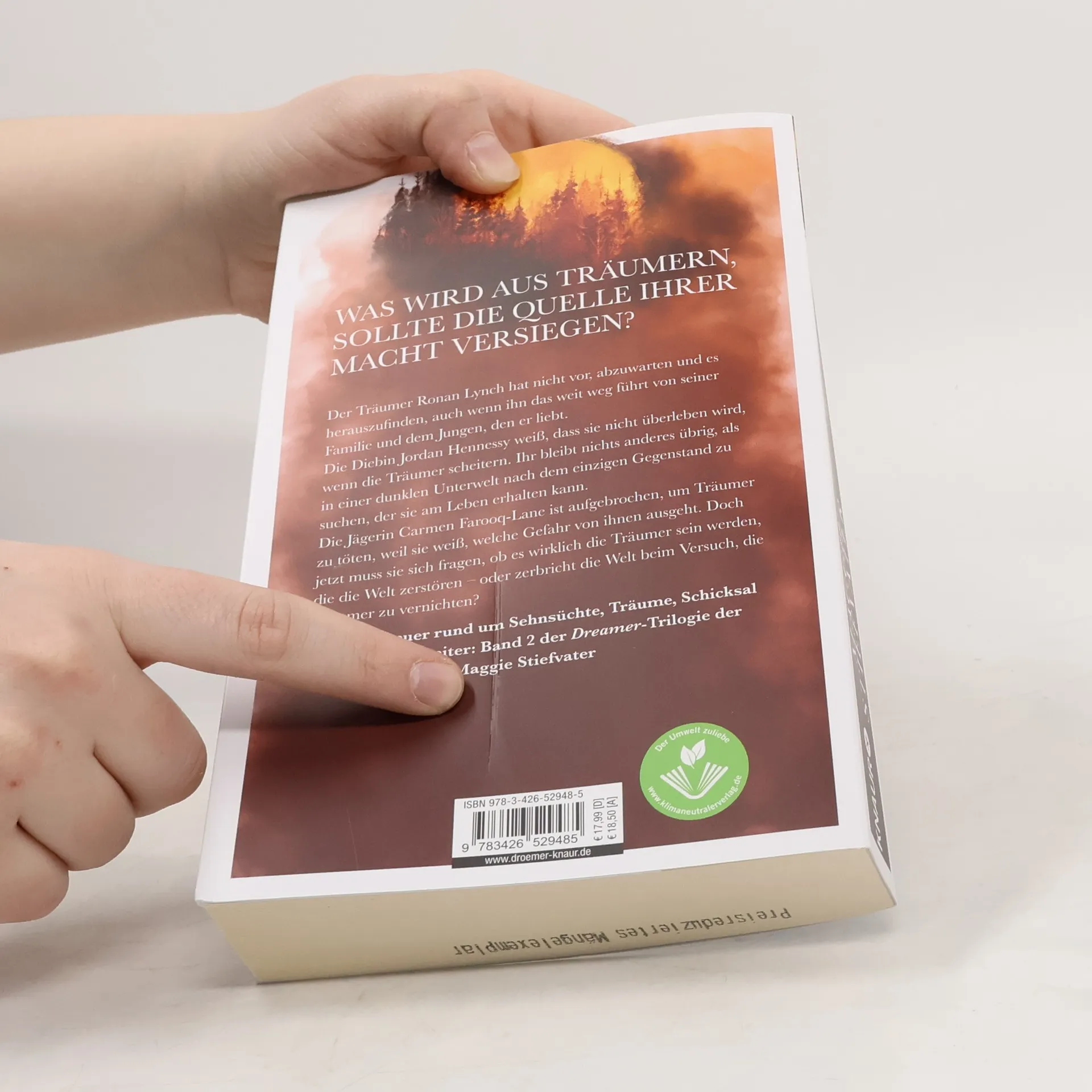 Die Träumer stehen vor einer existenziellen Bedrohung: Ihre Machtquelle wird blockiert und droht zu versiegen. Ronan Lynch, ein Träumer, will nicht abwarten, was passiert, auch wenn das bedeutet, sich von seiner Familie und seinem Geliebten zu entfernen. Jordan Hennessy, eine Diebin, erkennt, dass ihr Überleben von dem Erfolg der Träumer abhängt und begibt sich auf eine gefährliche Suche in einer dunklen Unterwelt nach einem lebenswichtigen Gegenstand. Carmen Farooq-Lane, eine Jägerin, die Träumer töten wollte, sieht sich mit der Frage konfrontiert, ob die Träumer tatsächlich die Welt gefährden oder ob die Welt selbst beim Versuch, sie zu vernichten, zerbricht. In diesem zweiten Teil der Trilogie entfaltet die Autorin ein unvorhersehbares Abenteuer, das sich um Sehnsüchte, Träume, Schicksal und Tod dreht und die Protagonisten bis an ihre Grenzen treibt. Die Dreamer-Trilogie setzt die Geschichte der Fantasy-Reihe fort und kann auch unabhängig gelesen werden. Der erste Teil ist bereits erschienen.