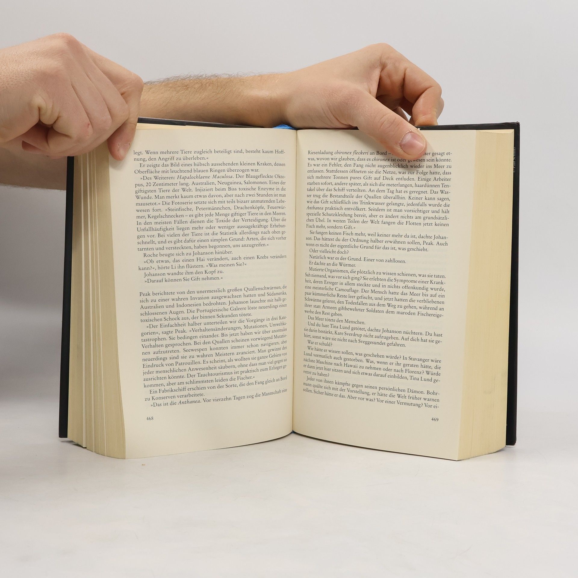 Ein Fischer verschwindet vor Peru, spurlos. Ölbohrexperten stossen in der norwegischen See auf merkwürdige Organismen, die hunderte Quadratkilometer Meeresboden in Besitz genommen haben. Währenddessen geht mit den Walen entlang der Küste British Columbias eine unheimliche Veränderung vor. Nichts von alledem scheint miteinander in Zusammenhang zu stehen. Doch Sigur Johanson, norwegischer Biologe und Schöngeist, glaubt nicht an Zufälle. Auch der indianische Walforscher Leon Anawak gelangt zu einer beunruhigenden Erkenntnis: Eine Katastrophe bahnt sich an. Doch wer oder was löst sie aus? Während die Welt an den Abgrund gerät, kommen die Wissenschaftler zusammen mit der britischen Journalistin Karen Weaver einer ungeheuerlichen Wahrheit auf die Spur. - Beklemmender äNear-Futureä-Thriller!