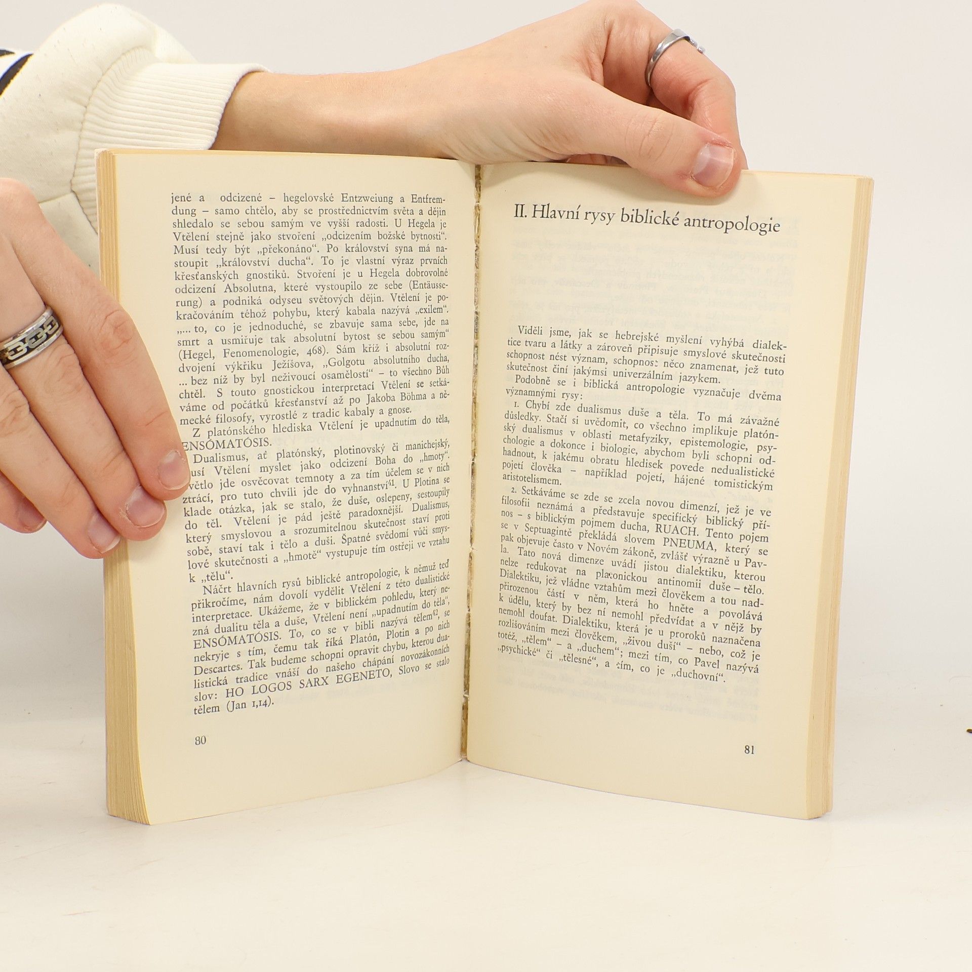 Známý francouzský filosof uskutečnil ve své prvotině sestup ke kořenům dvojí linie evropského myšlení, které právem spatřuje v biblickém směru a v pozicích klasických řeckých úvah. Z tohoto hlediska jsou s neobyčejnou erudicí nově prokresleny základní filosofické pojmy a kategorie. Rovněž jsou zvýrazněny šlépěj a tradice i různé formy jejího přehodnocení u pozdějších evropských myslitelů, především u Bergsona, ale také u Spinozy, Descarta, Leibnize ap.