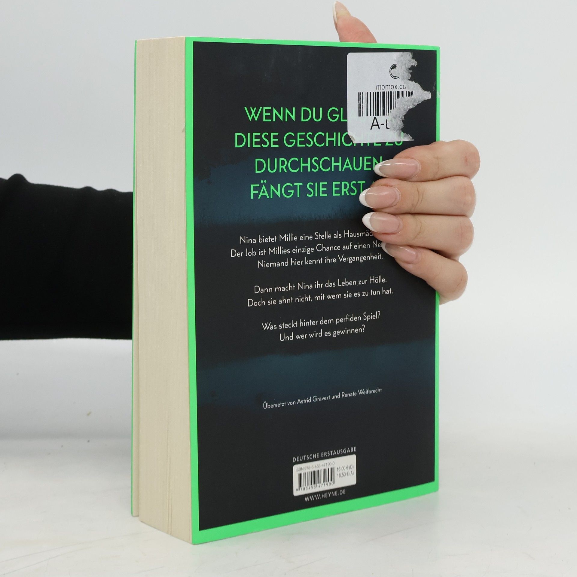 Wenn du glaubst, diese Geschichte zu durchschauen, fängt sie erst an Millie kann ihr Glück kaum fassen, als die elegante Nina ihr die Stelle als Haushaltshilfe inklusive Kost und Logis bei ihrer Familie auf Long Island anbietet. Schließlich hat sie eine Vergangenheit, von der niemand etwas wissen soll. Doch kaum ist Millie eingezogen, zeigt Nina ihr wahres Gesicht: Sie verwüstet das Haus und unterstellt ihr Dinge, die sie nicht getan hat. Ihre verwöhnte Tochter behandelt Millie ohne jeden Respekt. Nur Ninas attraktiver Mann Andrew ist nett zu ihr. Wäre da nur nicht Ninas wachsende Eifersucht. Hat sie Millie nur eingestellt, um ihr das Leben zur Hölle zu machen? Oder hat auch sie ein dunkles Geheimnis, von dem niemand etwas erfahren darf?