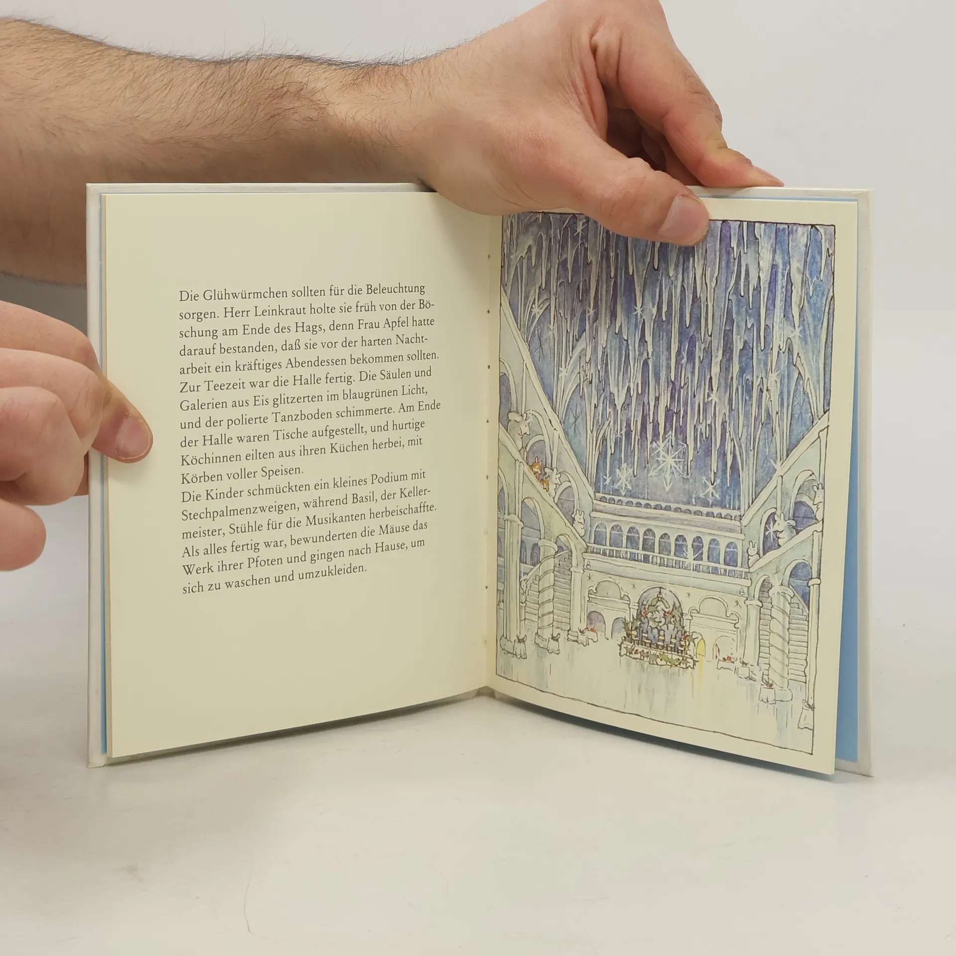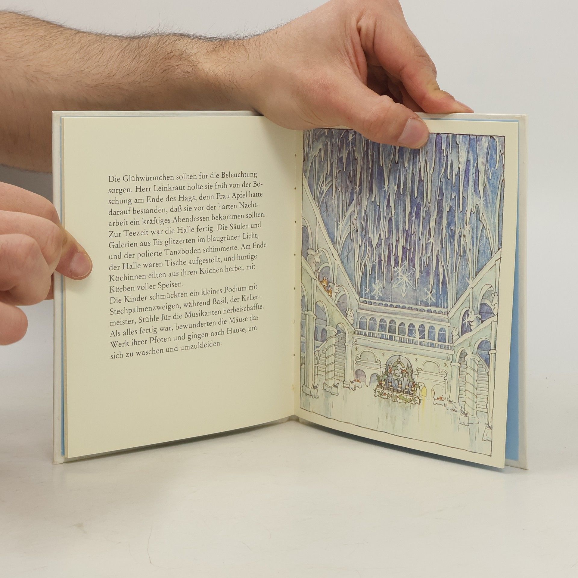 Es schneit im Brombeerhag. Viele Mäusekinder haben noch nie Schnee gesehen. Durch den Schnee müssen Tunnel von Haus zu Haus gegraben werden. Dabei stoßen die Mäuse auf eine große Schneewehe vor dem Speicherbaum. Hier ließe sich eine herrliche Eishalle für einen Wintermäuseball bauen ...
