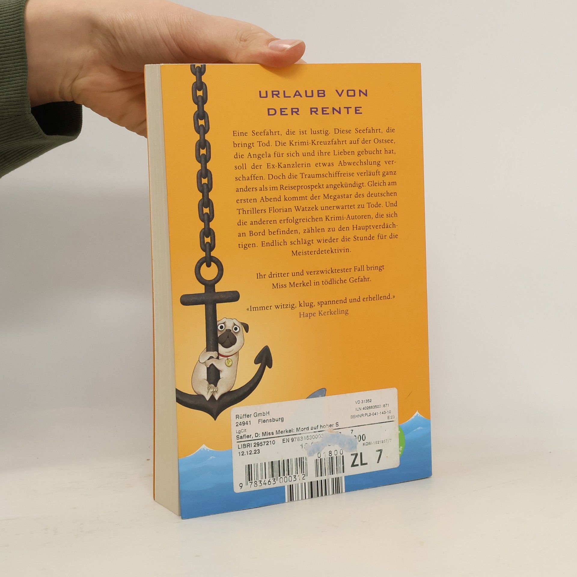 URLAUB VON DER RENTE Eine Seefahrt, die ist lustig. Diese Seefahrt, die bringt Tod. Die Krimi-Kreuzfahrt auf der Ostsee, die Angela für sich und ihre Lieben gebucht hat, soll der Ex-Kanzlerin etwas Abwechslung verschaffen. Doch die Traumschiffreise verläuft ganz anders als im Reiseprospekt angekündigt. Gleich am ersten Abend kommt der Megastar des deutschen Thrillers Florian Watzek unerwartet zu Tode. Und die anderen erfolgreichen Krimiautoren, die sich an Bord befinden, zählen zu den Hauptverdächtigen. Endlich schlägt wieder die Stunde für die Meisterdetektivin. Ihr dritter und verzwicktester Fall bringt Miss Merkel in tödliche Gefahr. «Immer witzig, klug, spannend und erhellend.»Hape Kerkeling
