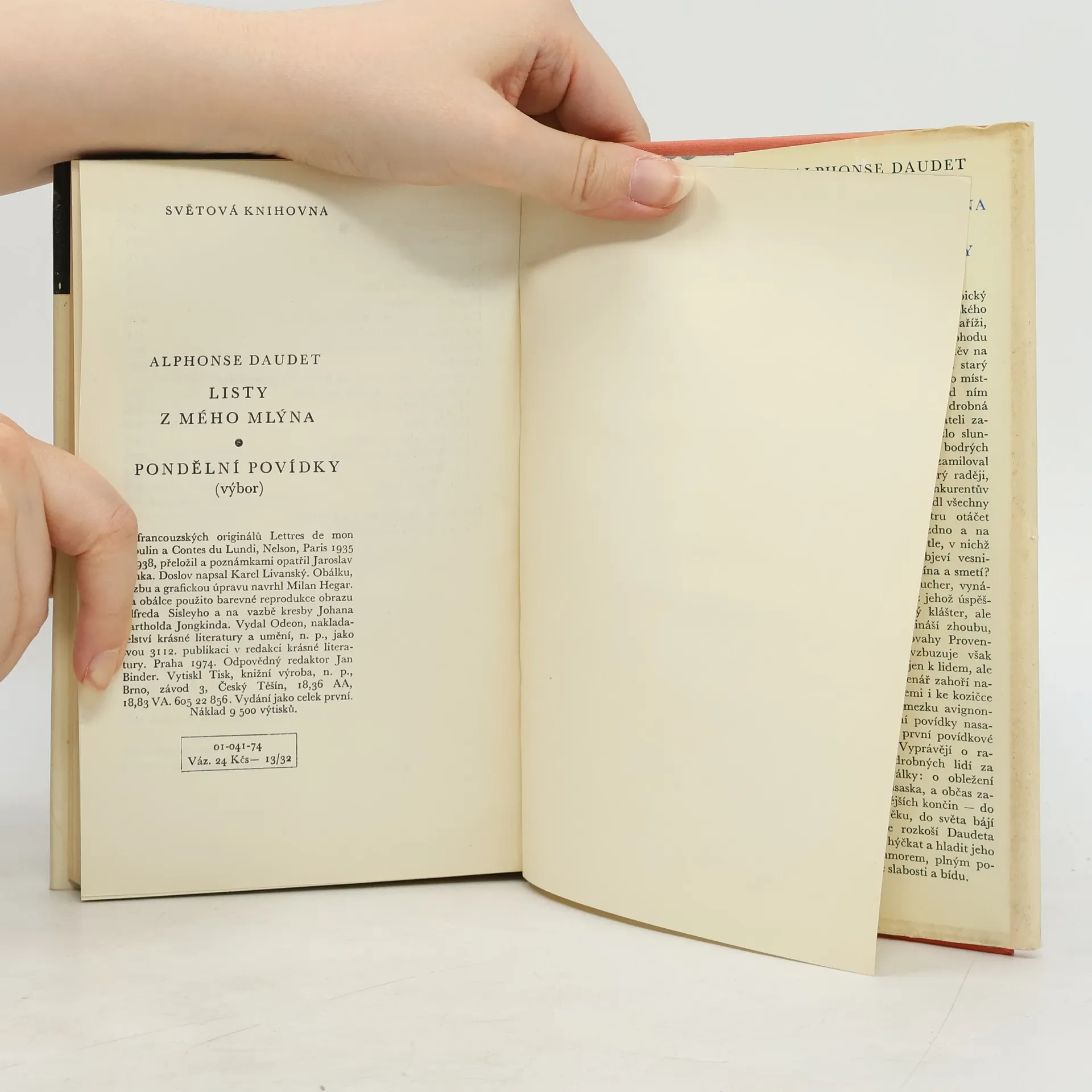 Dvě povídkové sbírky francouzského prozaika a dramatika. První, v níž autor vzdává hold rodnému jihofrancouzskému kraji, přináší poetické příběhy o dobromyslných provensálských venkovanech, o jejich čtyřnohých přátelích i o divukrásné přírodě, v níž žijí; idylicky smířlivé vyznění většiny příběhů navozuje atmosféru pohody, kterou zvýrazňuje ironický nadhled autorův, přecházející do humorných poloh. Druhá vypráví zejména o strastech drobných lidí za francouzsko-pruské války, přičemž většina povídek je prodchnuta hlubokým vlasteneckým cítěním prostých lidí, kteří jsou ochotni položit životy pro záchranu země. Karel Livanský: „Dvě knihy Daudetových povídek“.