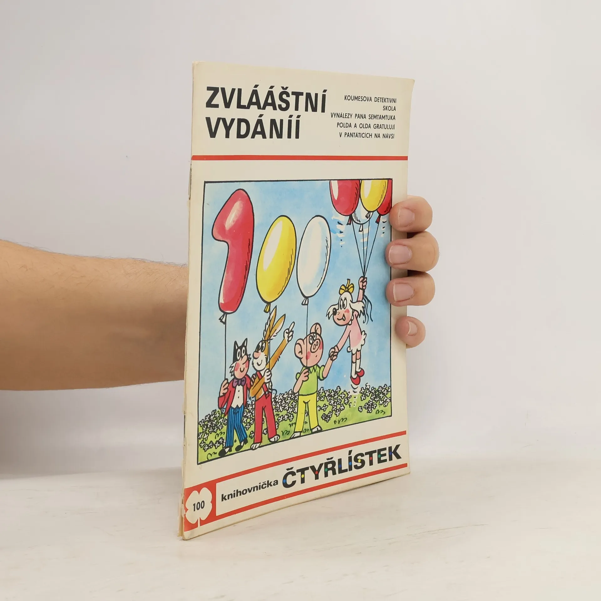 100. díl série. Zvlááštní vydáníí - Ljuba Štíplová, Jaroslav Němeček. Koumesova detektivní škola - Vladimír Kliman, Sylvie Vodáková. Vynálezy pana Semtamťuka - Svatopluk Hrnčíř, Adolf Born. Polda a Olda gratulují - Petr Chvojka, Jaroslav Malák. V Pantáticích na návsi - Povídání omlýnku - Pavel Šrut, Jiří Kalousek.