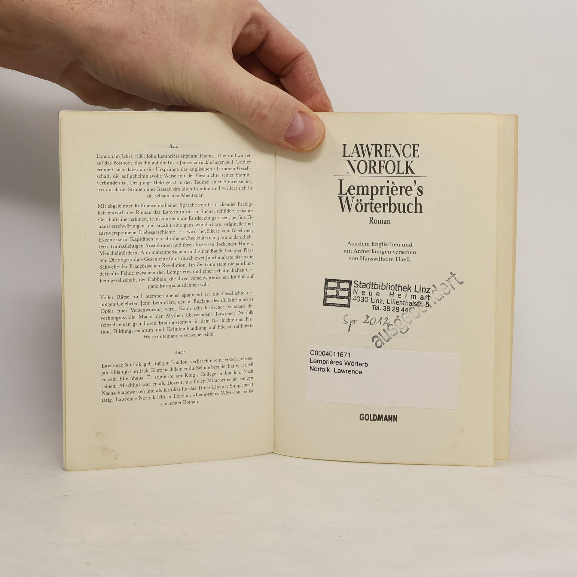 Lemprière's Wörterbuch, Lawrence Norfolk