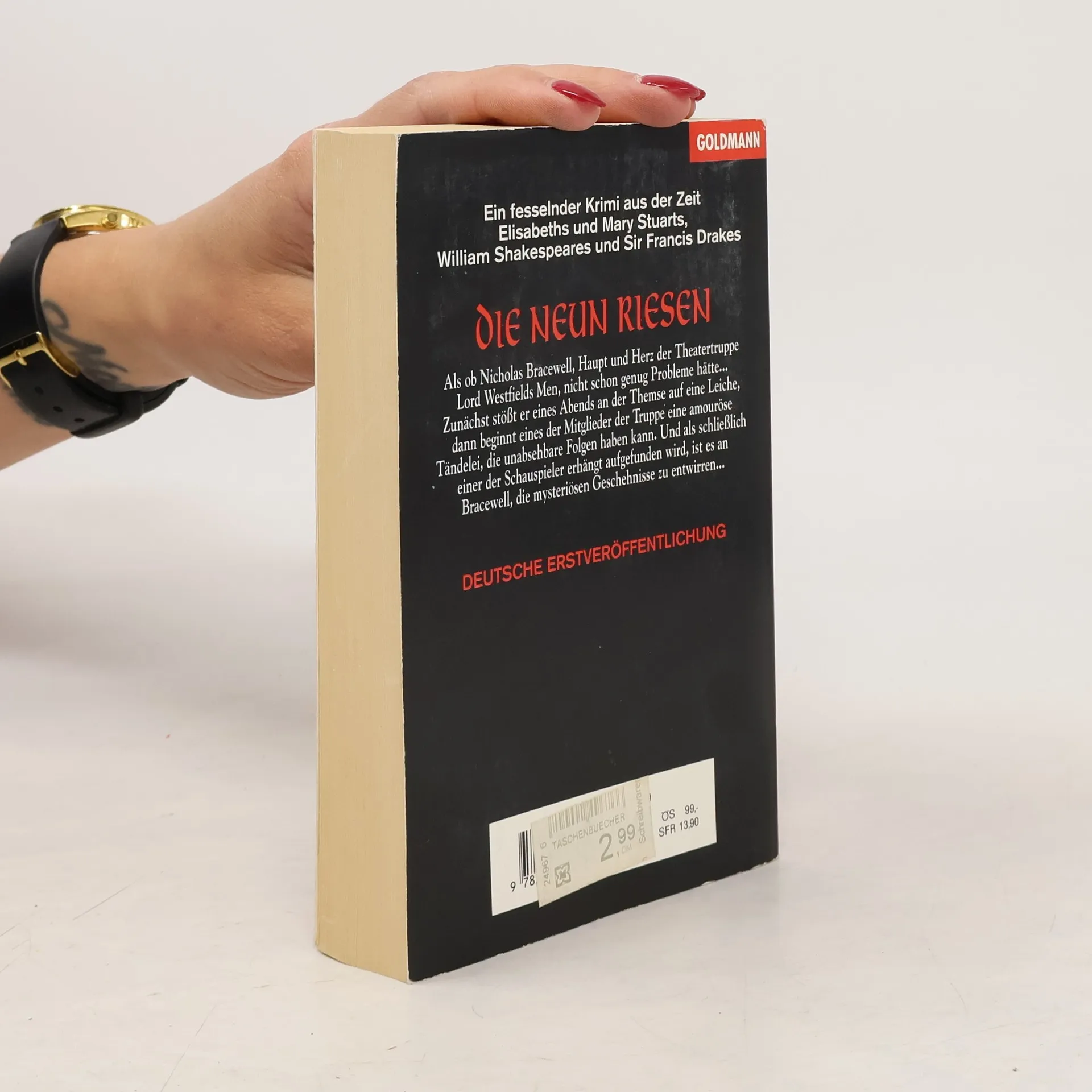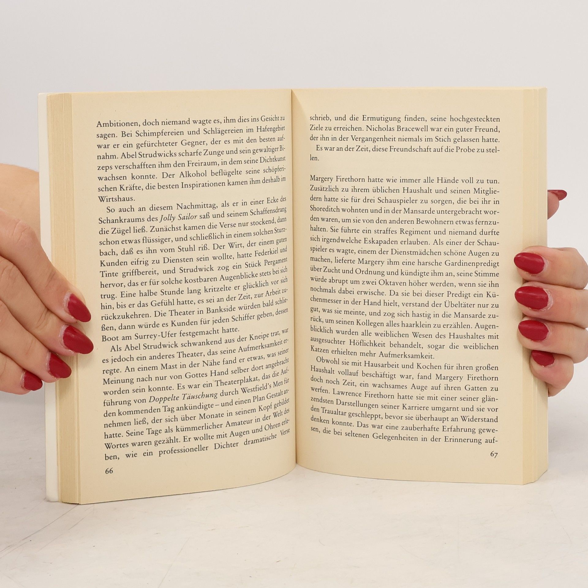 Die im Londoner Gasthaus "Das Haupt der Königin" (BA 3/93) auftretende Theatergruppe wird auch im 3. Band der historischen Krimireihe (zuletzt "Schwarze Narren, rote Teufel": BA 8/93) in rätselhafte Vorfälle und mörderische Anschläge verwickelt. Neben der spannenden Handlung überzeugt auch hier die plastische, kulturgeschichtlich interessante Schilderung des Theater- und Schauspielerlebens sowie das ebenso farbig wie detailreich ausgemalte Volksleben im Elisabethanischen London. Der Autor lät︢ in seinem Einfallsreichtum keine Ermüdungserscheinungen erkennen, folglich kann der Band ebenso empfohlen werden wie seine Vorgänger