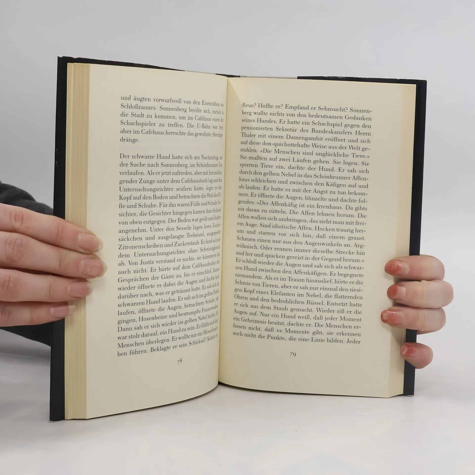 Der Untersuchungsrichter beschreibt die dunkle Höhle des Lebens, in der Ängste hausen, denen sich der Erzähler radikal aussetzt. Er nimmt die Herausforderung in einem System der Systemlosigkeit an, in dem es a priori keine Gerechtigkeit und Gesetzmäßigkeit gibt, wobei er die Justiz als markanteste Scheinverfestigung ansieht. Sonnenberg untersucht nicht nur Kriminalfälle, sondern auch die sogenannte Wirklichkeit, die ihm immer mehr entgleitet. Er erkennt, dass Tatsachen nur Übereinkünfte sind und dass die Justiz Ausdruck der Angst ist, die die Gesellschaft vor sich selbst hat. Immer mehr verliert er sich in einer halluzinierten Welt, bis er zwischen alltäglichen Erfahrungen und Wachträumen nicht mehr unterscheiden kann. Die Justiz erfindet die Welt, die sie benötigt, und diese paranoide Welt ist selbst eine Welt des Verbrechens. Den Untersuchungsrichter begleitet der sprechende Hund Schwiff, der die Vernunft verkörpert und die Rolle des Verbrechens in der alltäglichen Wahnwelt erfasst. Auch er kann sich dem Verbrechensprozess nicht entziehen. Der Erzähler unterbricht immer wieder die fragmentarischen Ereignisse, erkennt jedoch, dass seine Gedankensplitter nicht gegen die Welt des Verbrechens bestehen können. So wird Sonnenberg zum Erzähler, der sich selbst untersucht. Beide erkennen schließlich, dass der Schlüssel zum Verständnis von Opfern und Tätern im Wissen des Menschen über sich selbst liegt.
