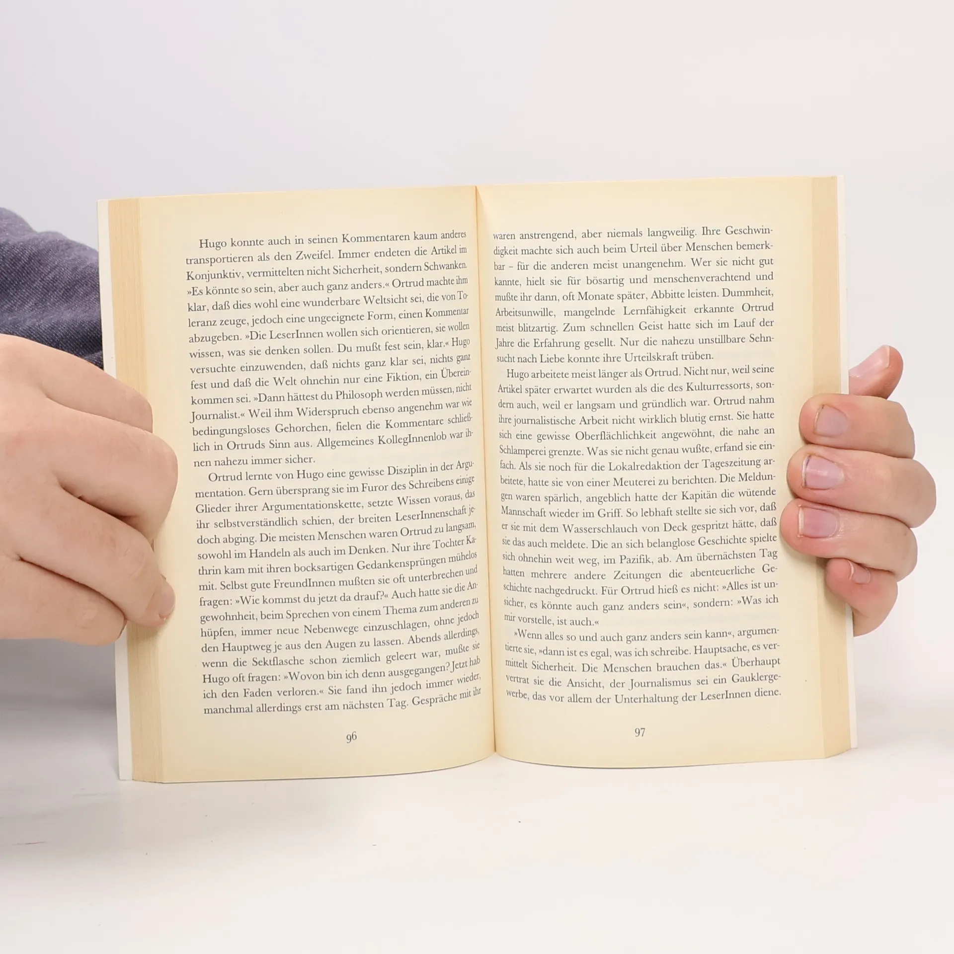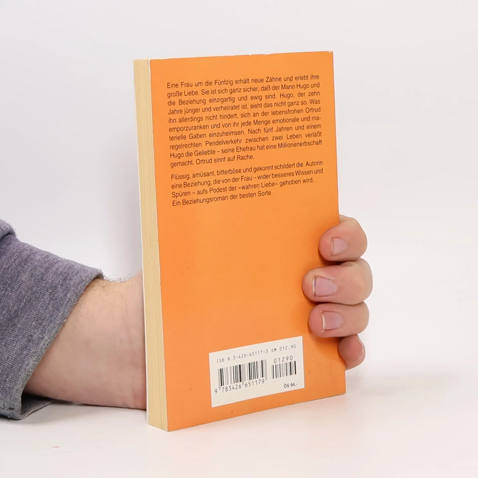 Eine Frau um die 50 erhält neue Zähne und erlebt ihre große Liebe. Sie ist sich ganz sicher, daß der Mann Hugo und die Beziehung einzigartig und ewig sind. Hugo, der zehn Jahre jünger und verheiratet ist, sieht das nicht ganz so. Was ihn allerdings nicht hindert, sich an der lebensfrohen Ortrud emporzuranken und von ihr jede Menge emotionale und materielle Gaben einzuheimsen. Nach fünf Jahren und einem regelrechten Pendelverkehr zwischen zwei Leben verläßt Hugo die Geliebte - seine Ehefrau hat eine Millionenerbschaft gemacht. Ortrud sinnt auf Rache.§Flüssig, amüsant, bitterböse und gekonnt schildert die Autorin das Muster einer Suchtbeziehung, die von der Frau - wider besseres Wissen und Spüren - aufs Podest der "wahren Liebe" gehoben wird.