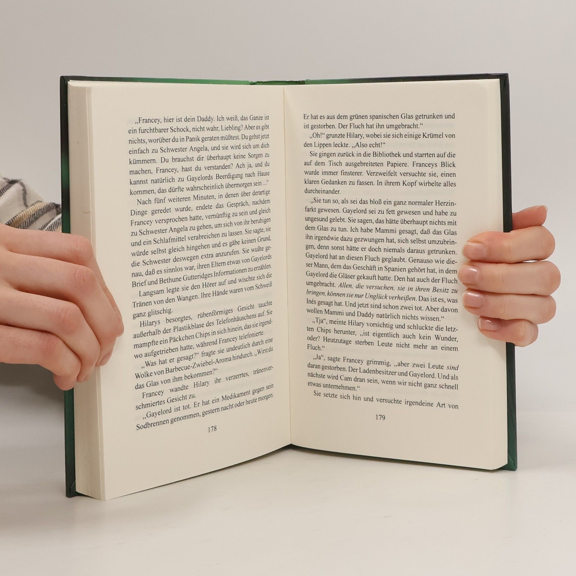 Cams Freundin Francey liebt spiritistische Sitzungen. Doch bei der letzten Séance begann Cam auf einmal in einer fremden Sprache zu reden. Seitdem ist sie schwer krank und will nichts mehr essen. Alles scheint mit dem antiken grünen Glas zusammenzuhängen, das vor vierhundert Jahren einer jungen spanischen Adligen gehört hat. Inés de Figueroa wurde damals bestraft, weil sie ihr Gelübde gebrochen hatte. Und ihr Geliebter Ramón war seither spurlos verschwunden. Wird es Francey gelingen, Cam rechtzeitig von dem Fluch des grünen Glases zu befreien?