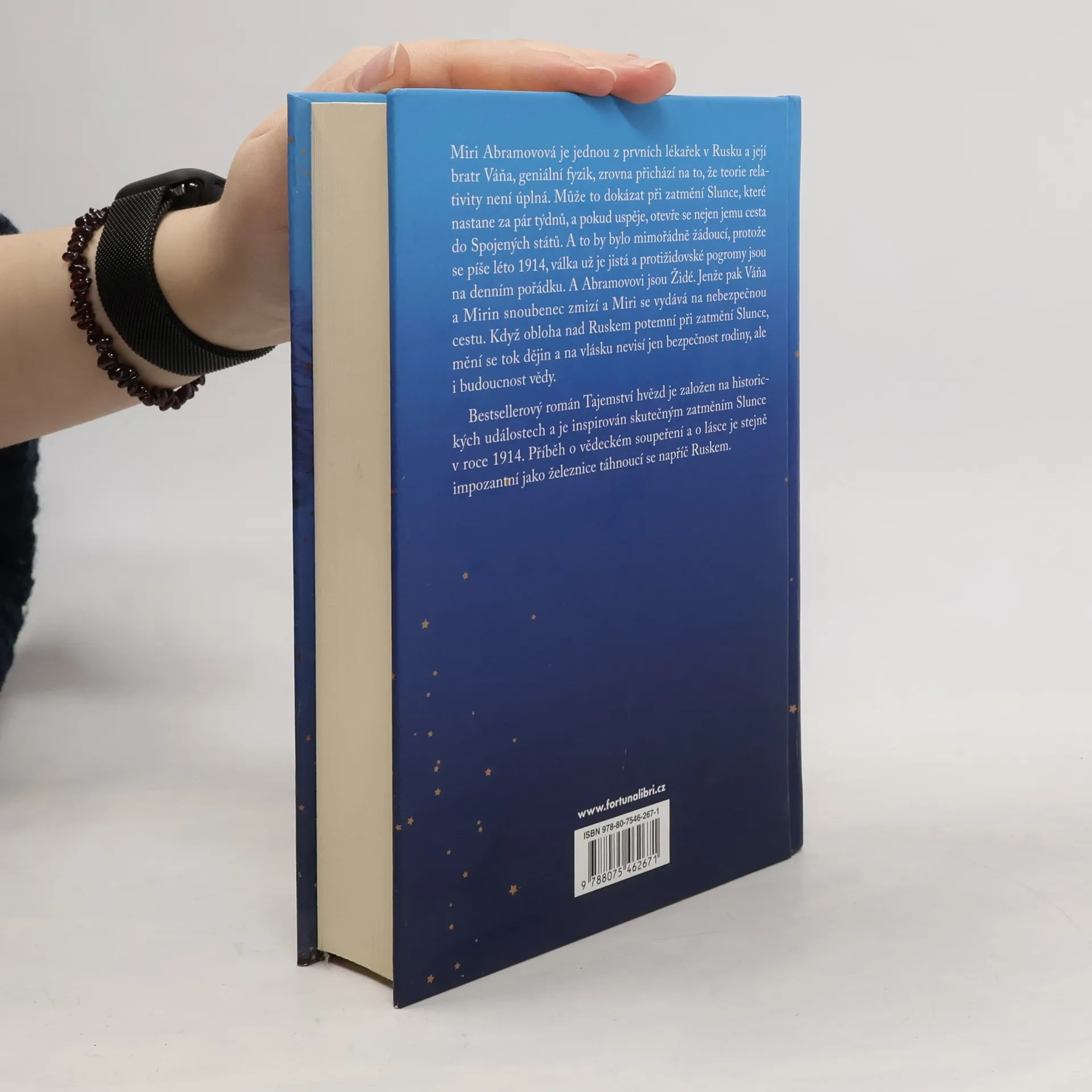 Miri Abramovová je jednou z prvních lékařek v Rusku a její bratr Váňa, geniální fyzik, zrovna přichází na to, že teorie relativity není úplná. Může to dokázat při zatmění Slunce, které nastane za pár týdnů, a pokud uspěje, otevře se nejen jemu cesta do Spojených států. A to by bylo mimořádně žádoucí, protože se píše léto 1914, válka už je jistá a protižidovské pogromy jsou na denním pořádku. A Abramovovi jsou Židé. Jenže pak Váňa a Mirin snoubenec zmizí a Miri se vydává na nebezpečnou cestu. Když obloha nad Ruskem potemní při zatmění slunce, mění se tok dějin a na vlásku nevisí jen bezpečnost rodiny, ale i budoucnost vědy. Bestsellerový román Tajemství hvězd je založen na historických událostech a je inspirován skutečným zatměním Slunce v roce 1914. Příběh o vědeckém soupeření a o lásce je stejně impozantní jako železnice táhnoucí se napříč Ruskem.