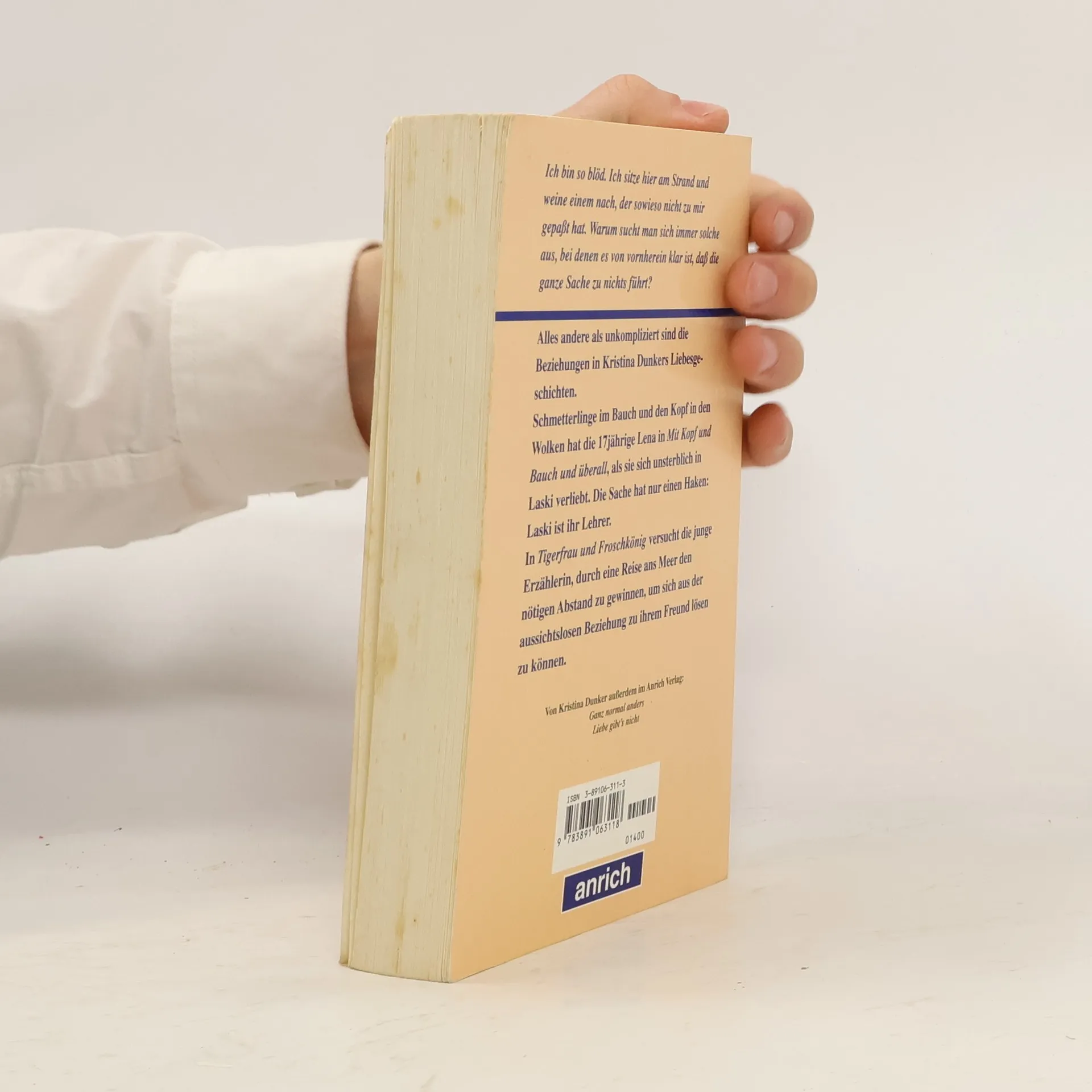 "Ich bin so blöd. Ich sitze hier am Strand und weine einem nach, der sowieso nicht zu mir gepaßt hat. Warum sucht man sich immer solche, bei denen von vorneherein klar ist, daß die ganze Sache zu nichts führt?" Alles andere als unkompliziert sind die Beziehungen in Kristina Dunkers Liebesgeschichten. Schmetterlinge im Bauch und den Kopf in den Wolken hat die 17-jährige Lena in "Mit Kopf und Bauch überall", als sie sich unsterblich in Laski verliebt. Die Sache hat nur einen Haken: Laski ist ihr Lehrer. In "Tigerfrau und Froschkönig" versucht die junge Errzählerin, durch eine Reise ans Meer den nötigen Abstand zu gewinnen, um sich aus der aussichtslosen Beziehung zu ihrem Freund lösen zu können.§