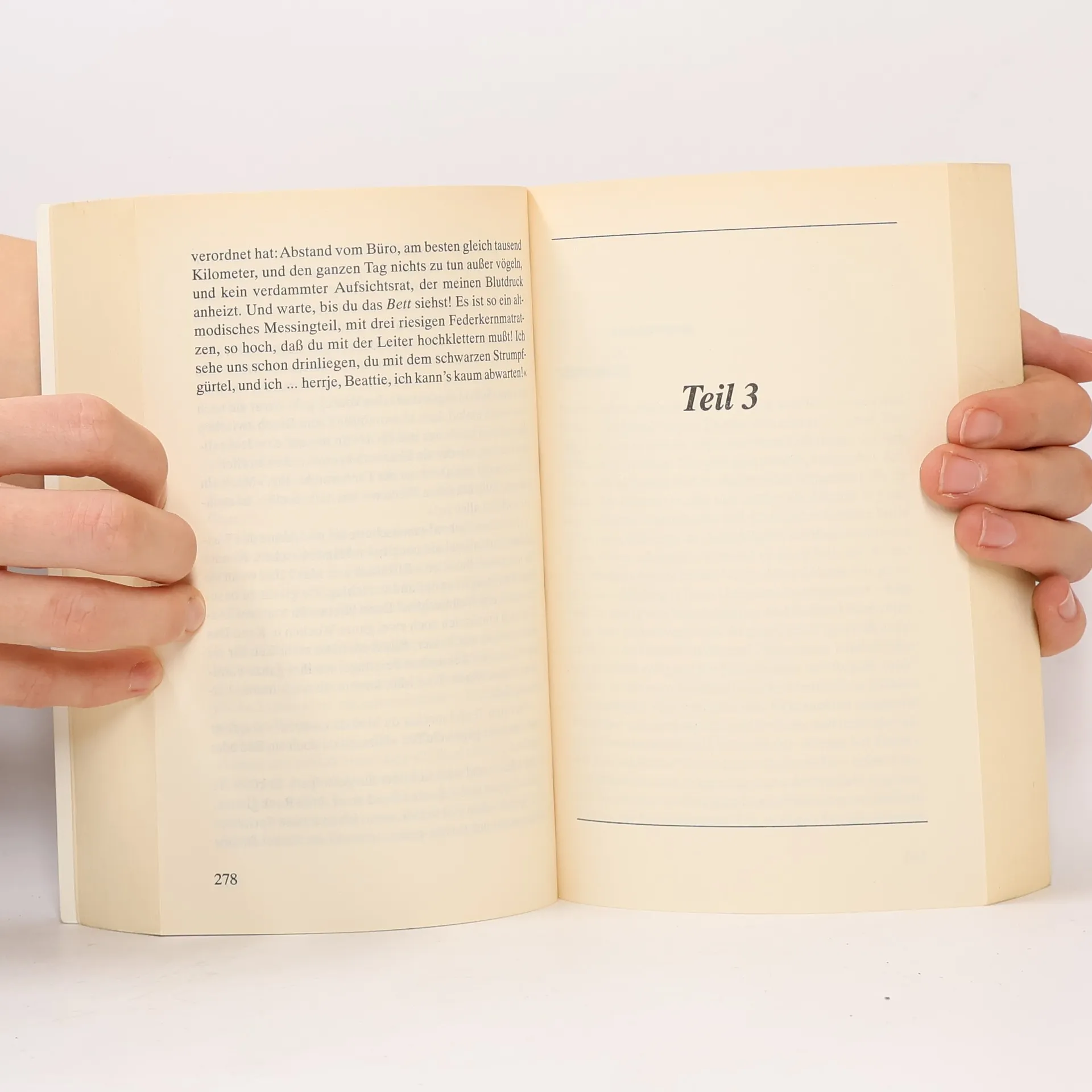 Ein Wochenende auf einer Schönheitsfarm führt zwei Frauen zusammen, wie sie unterschiedlicher nicht sein können: Beattie Cook, ehrgeizige Journalistin; Elizabeth Hargreaves, frisch geschieden und vierfache Mutter. Sie verlieben sich ineinander und geraten in ein verwirrendes Auf und Ab der Gefühle. Subtiler Roman über Liebe, Treue, Eifersucht.