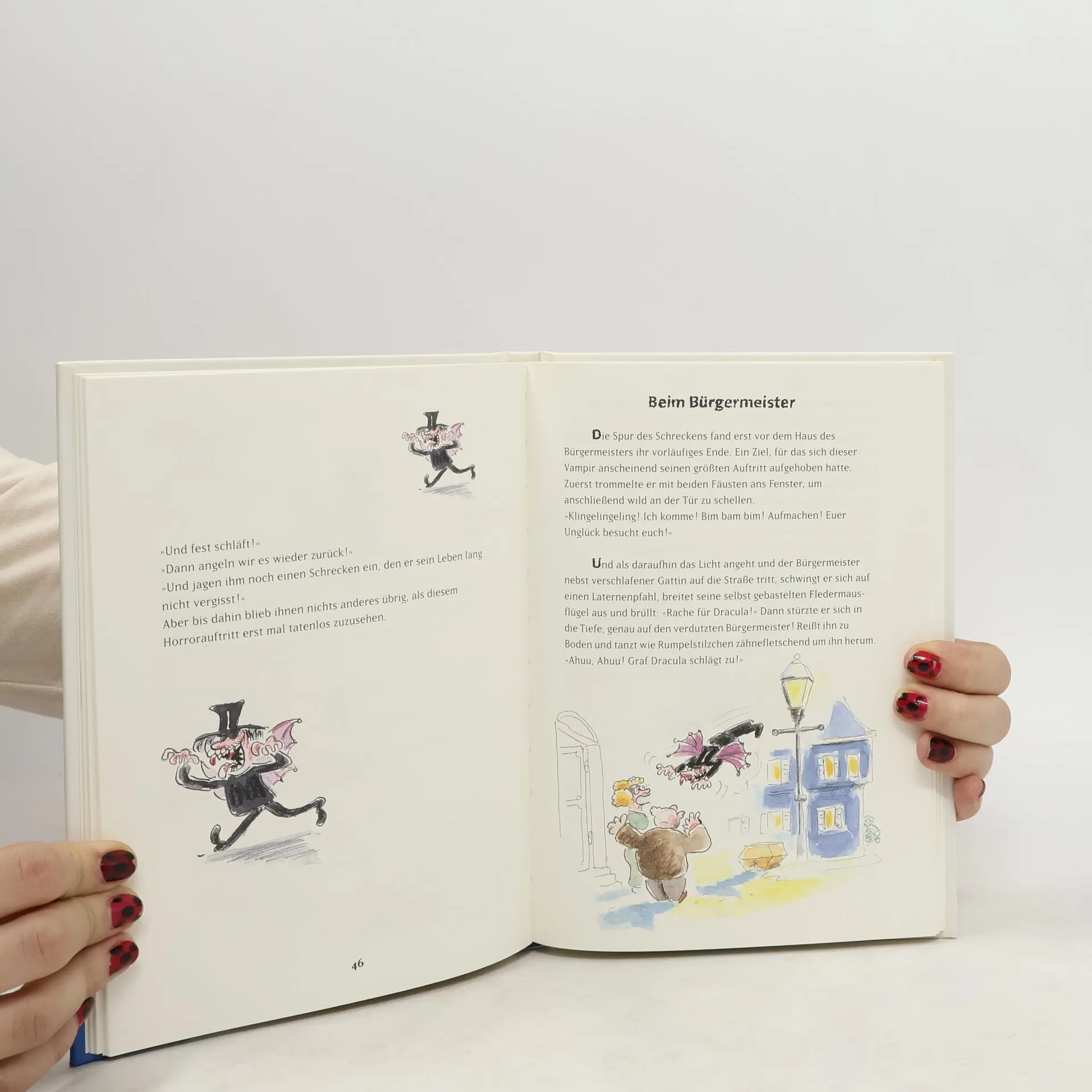 Richtig schön gruselig muss ihr Schneemann aussehen, meinen die kleinen Vampire: Ein Gebiss muss her!
